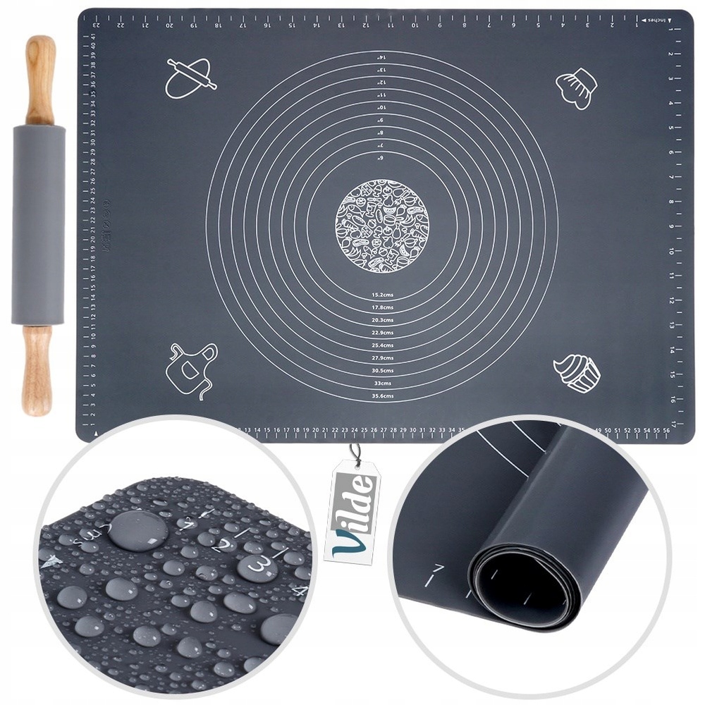 Корт и роликовая доска - это универсальные инструменты, которые определенно помогут вам работать и приготовить блюда на кухне. Легко чистить и удобно использовать. Благодаря им мы можем легко подготовить и развернуть тесто до желаемой толщины. Кроме того, благодаря вращающейся части ролика вам не нужно будет использовать большую силу во время катания. Полезно в каждом доме и в гастрономии. Не используйте острые ножи, чтобы разрезать тесто на доске, потому что это может повредить доске. Мы рекомендуем использовать силиконовые ножи. Оригинальный продукт VILDE