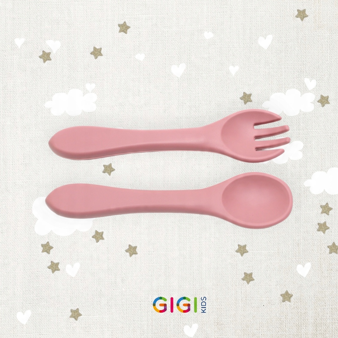 Сильконный столовые приборы, чайная ложка и вилка для детей, которые могут научиться есть самостоятельно