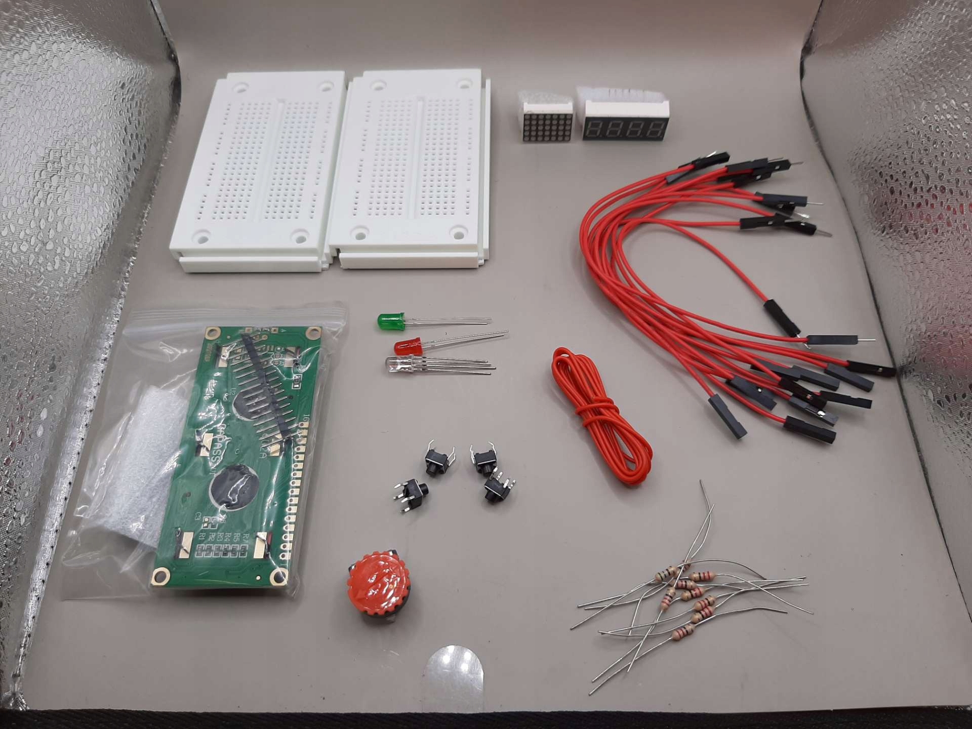 Прикрепленные компоненты: пластина для подключения, ЖК -модуль, разъем плаката, удлинитель порта, светодиоды, резисторы, подключаемые кабели и многие другие показывают больше