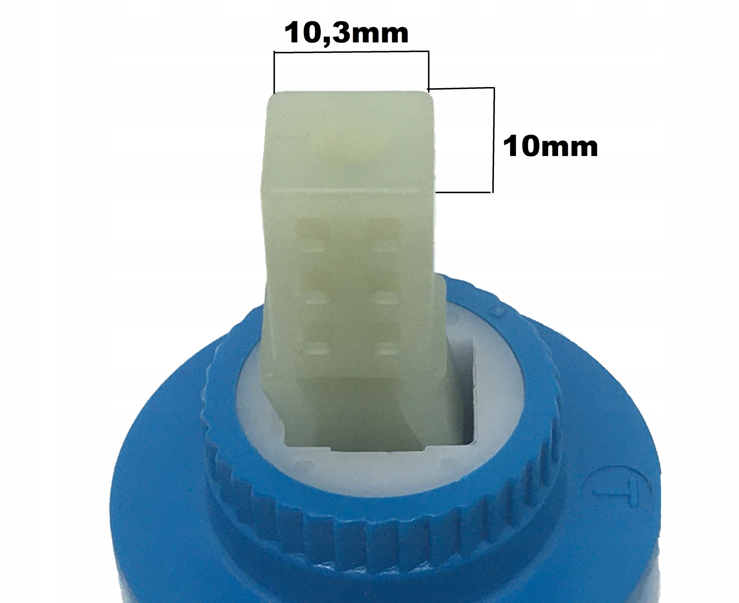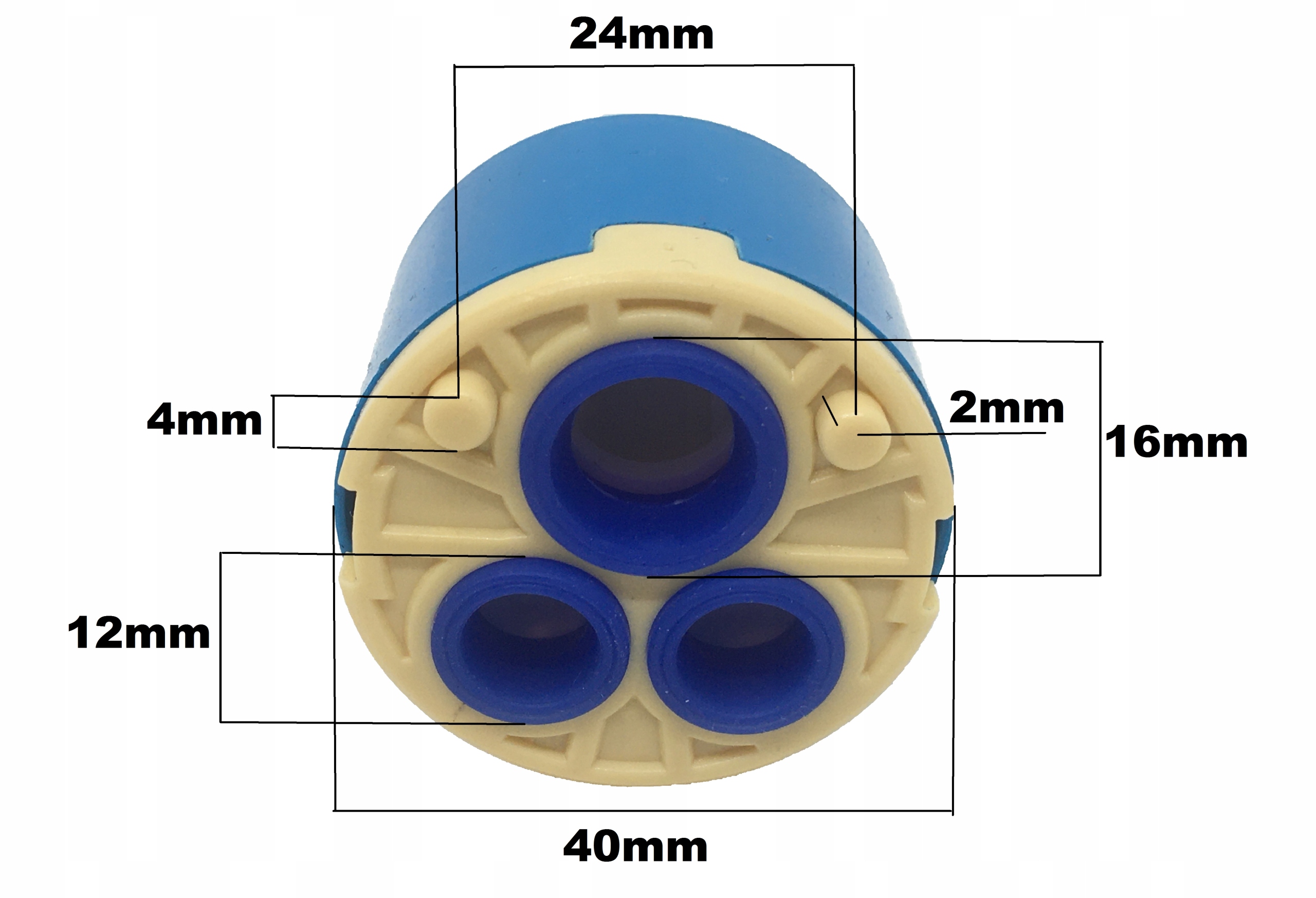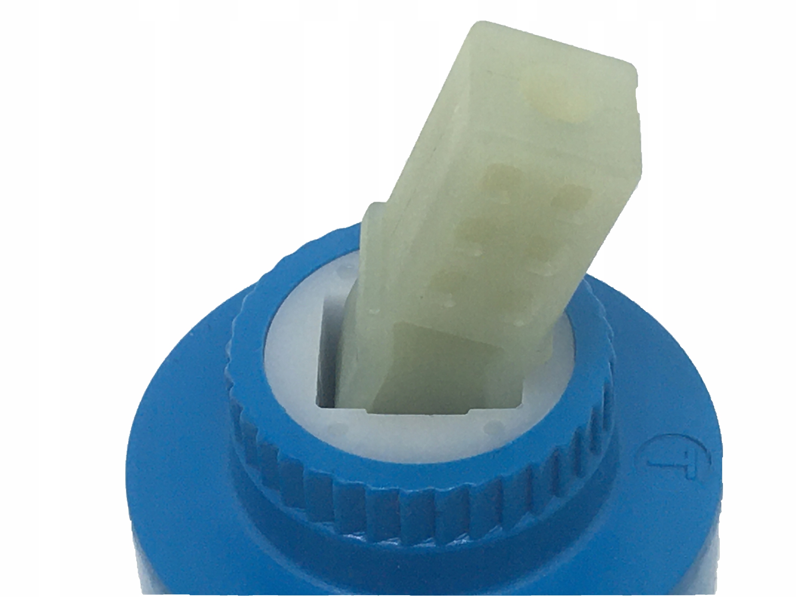 Головка, клапан, вставка для смесителя душевой кабины с гидромассажем. Корпус головки и штифт изготовлены из пластика, механизм головки (центр головки) – из керамики. Головка открывает и закрывает подачу воды и регулирует горячую и холодную воду. Диаметр головки 40 мм.