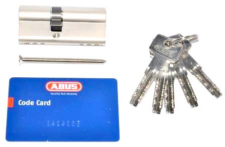 1 шт состоит из врезного цилиндра + винта крепления вкладыша + 5 ключей + кодовой карты, позволяющей дублировать ключи;
