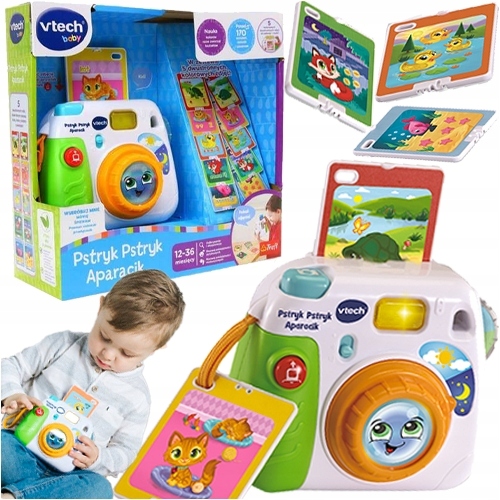 Камера станет идеальной игрушкой для каждого маленького фотографа. Pstryk Pstryk Camera изготовлена ​​из прочного пластика приятной расцветки. Он содержит множество интерактивных элементов, которые влияют на моторное развитие ребенка и стимулируют воображение.