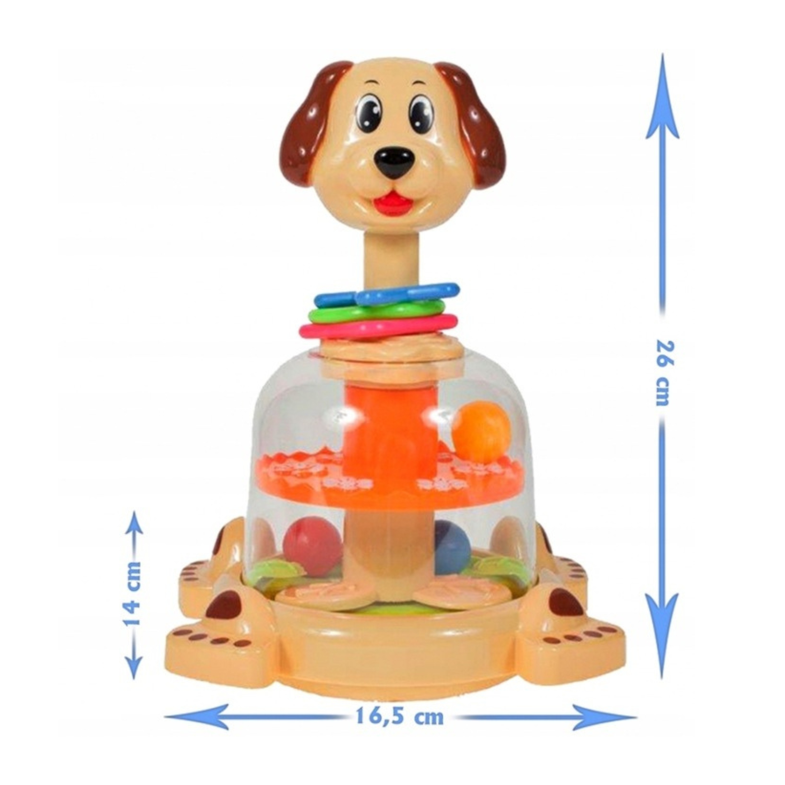 - Spinner Toy - нажимая голову собаки, ребенок превращает красочные шарики в движение, создавая вращающийся эффект, который привлекает глаз. Дружественные - привлекательные, яркие цвета побуждают малыша играть, стимулируя чувство зрения.