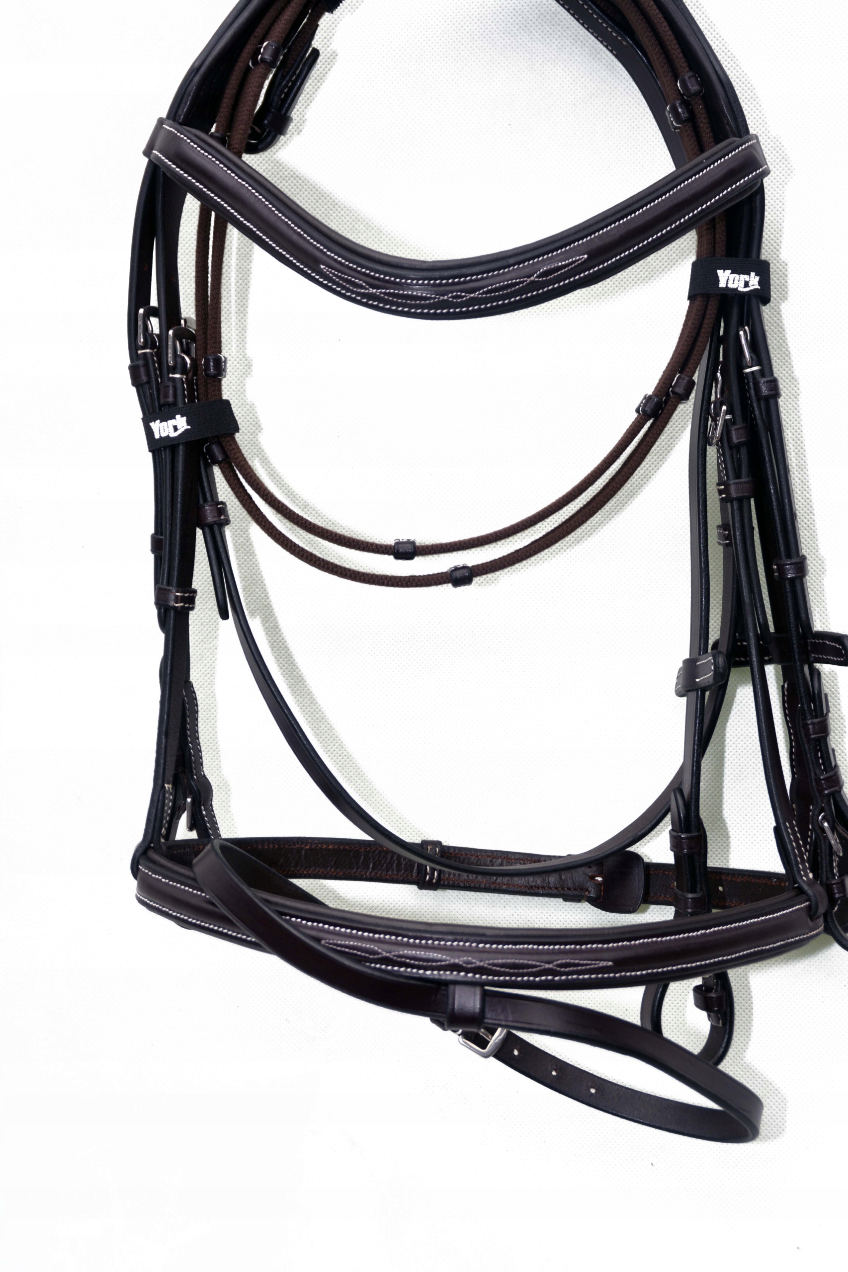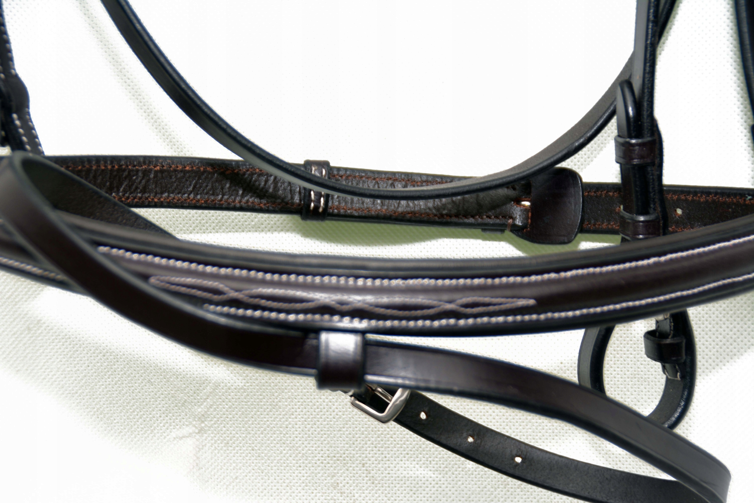 Анатомическая уздечка + поводья, профилированный размер. ПОЛНАЯ Уздечка изготовлена на фабрике Saddlery в Англии. Изготовлена из коровьей кожи высочайшего качества, очень мягкая и приятная на ощупь, затылочная часть и оголовье покрыты мягкой кожей для предотвращения потертостей. Уздечка застегивается и регулируется. Стабильные пряжки, изготовленные из очень хорошей благородной нержавеющей стали. Смело покупайте.