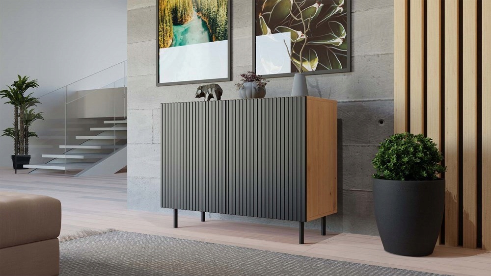КАМА УЗКИЙ КОМОД 2-ДВЕРНЫЙ - ARTISAN/ЧЕРНЫЙ
