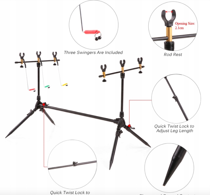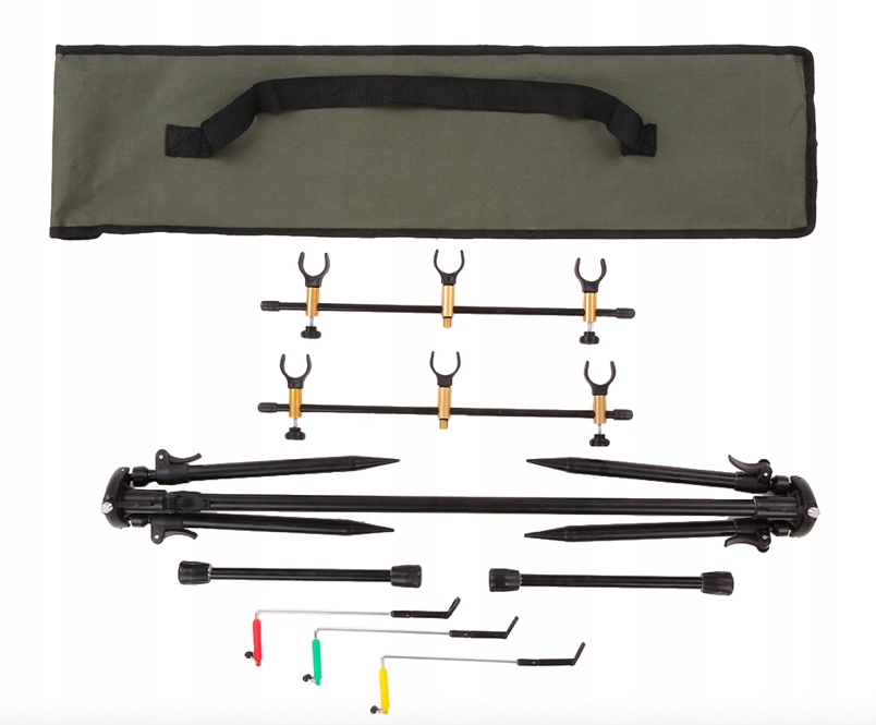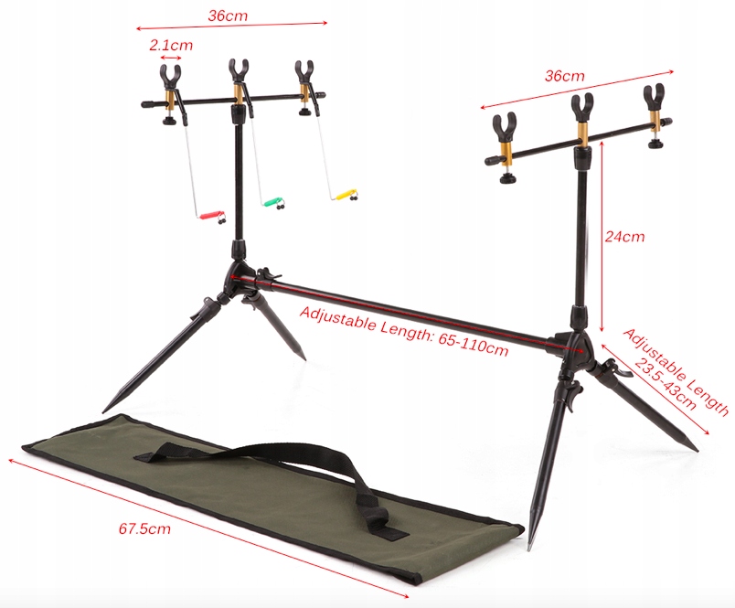 Очень устойчивая и прочная подставка для карпа изготовлена из прочного материала и рассчитана на 3 удилища с возможностью регулировки наклона, высоты и длины корпуса.
