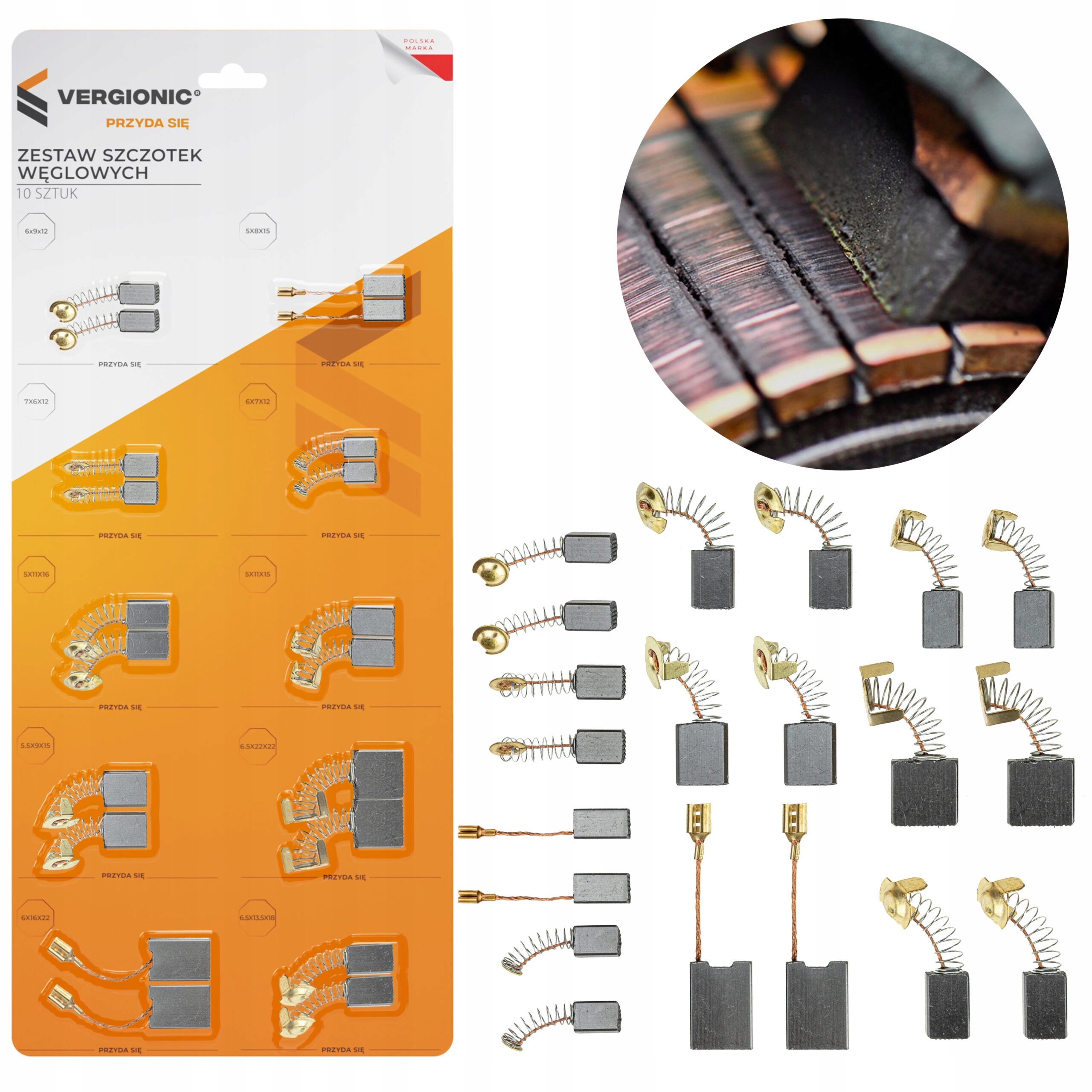 Для работы электроинструментов с щеточными двигателями необходимы соответствующие угольные щетки. Щётки обеспечивают передачу электрического заряда между двумя движущимися частями двигателя. Во время этой работы они совершают механические движения, вызывающие постепенный износ. Очень важно иметь в вашей мастерской запасные, сменные щетки, которые необходимо менять для правильной работы техники.
