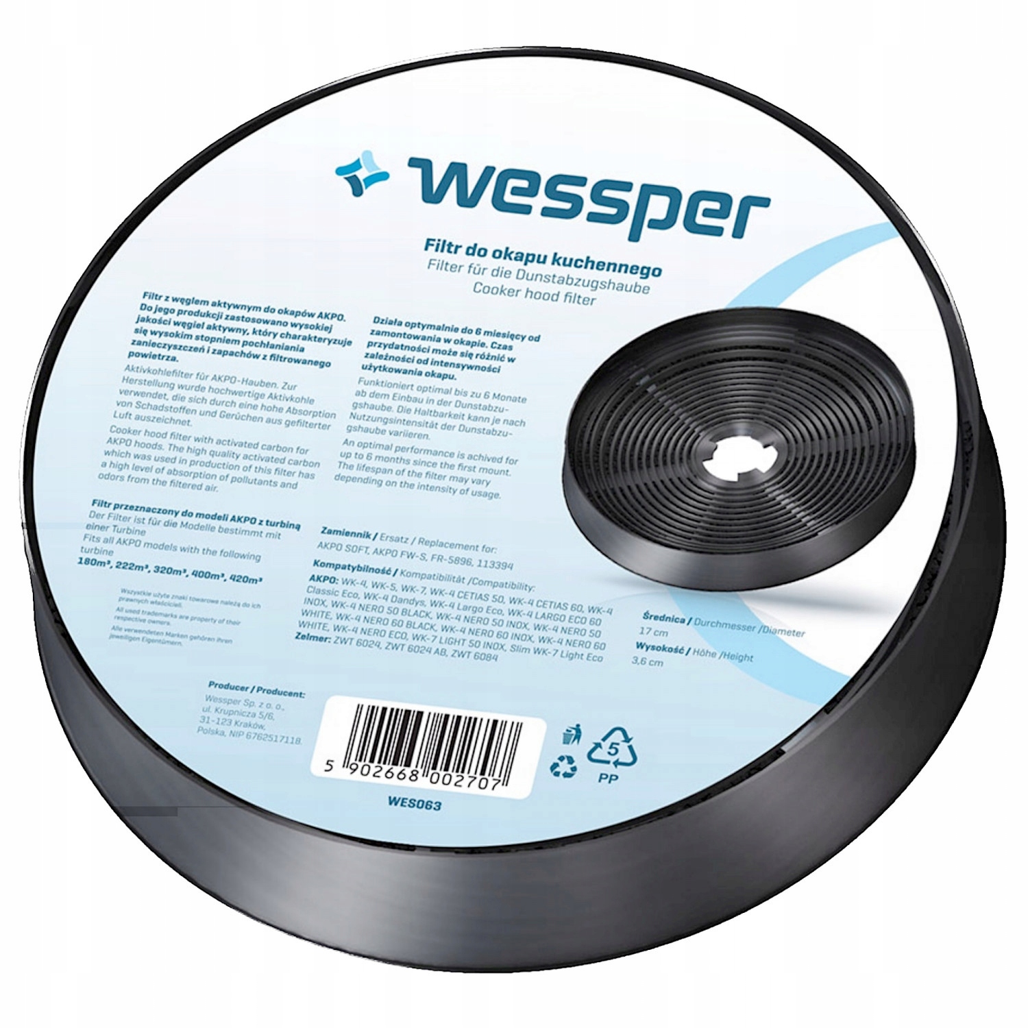УГЛЕРОДНЫЙ ФИЛЬТР WESSPER ДЛЯ МЯГКИХ КУХОННЫХ ВЫТЯЖЕК FW-S AKPO