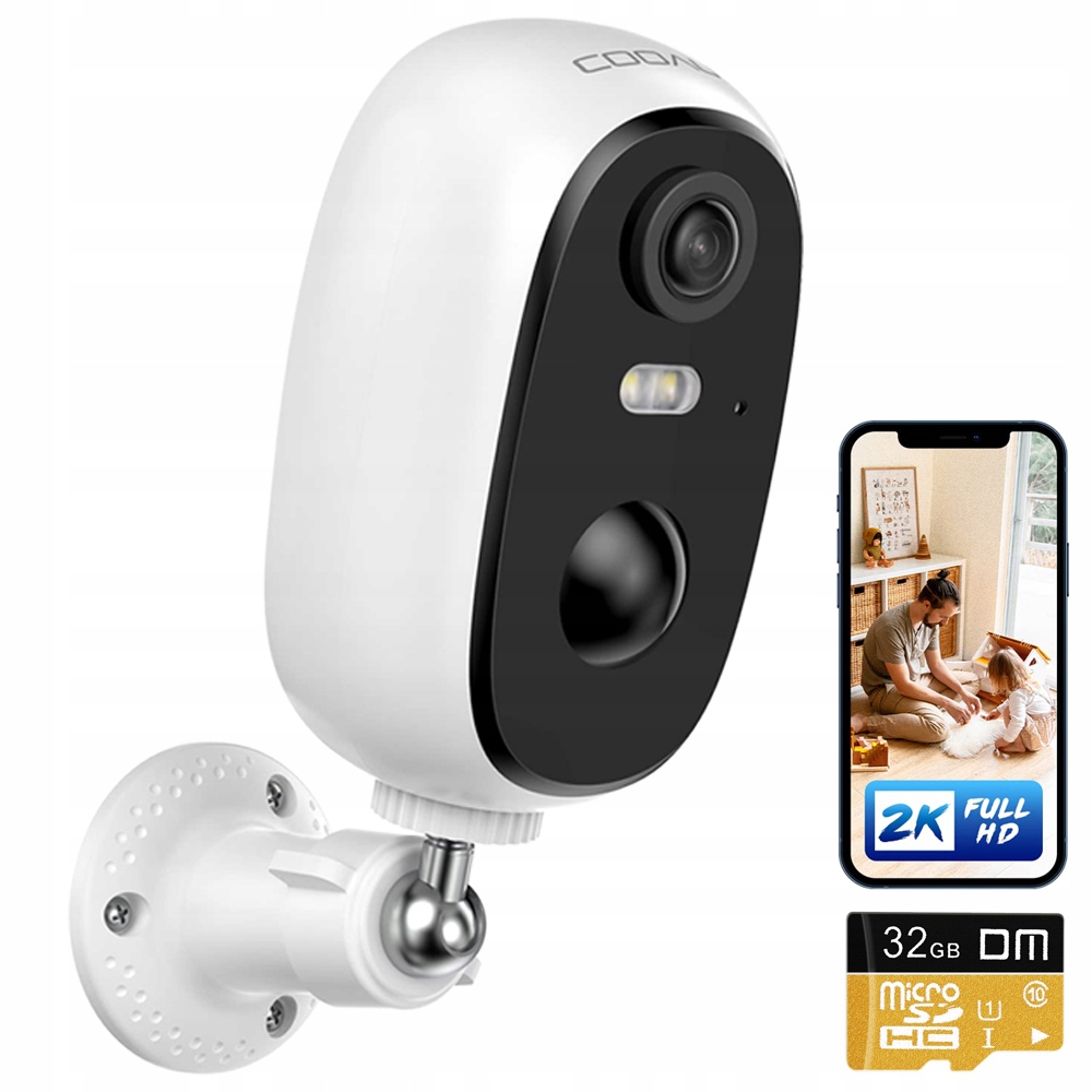 Беспроводная IP-камера COOAU WiFi 2K, 3 МП, 32 ГБ