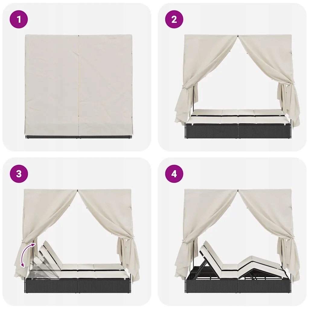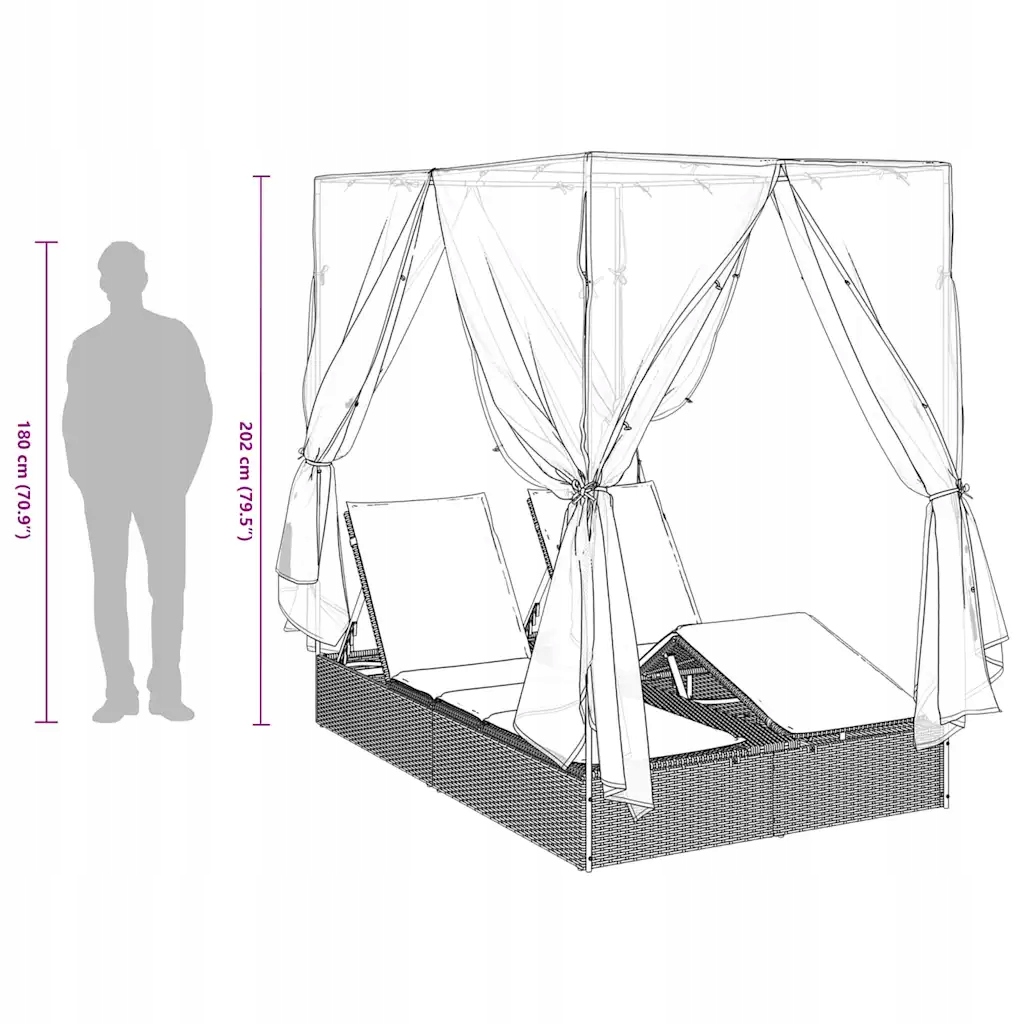 Уличный двухместный шезлонг с балдахином и шторами, 205x129x200 см, черный