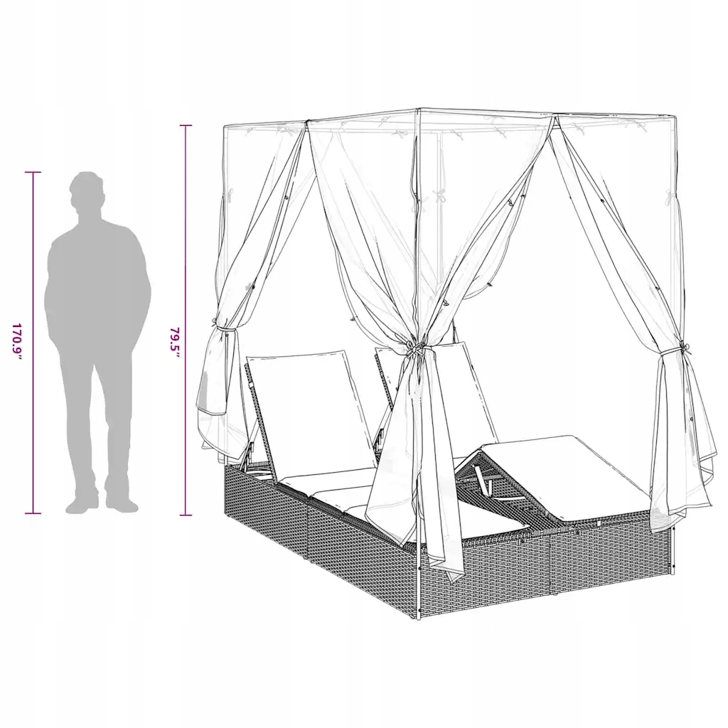 Уличный двухместный шезлонг с чехлом и шторами, 205x129x200 см, Ш