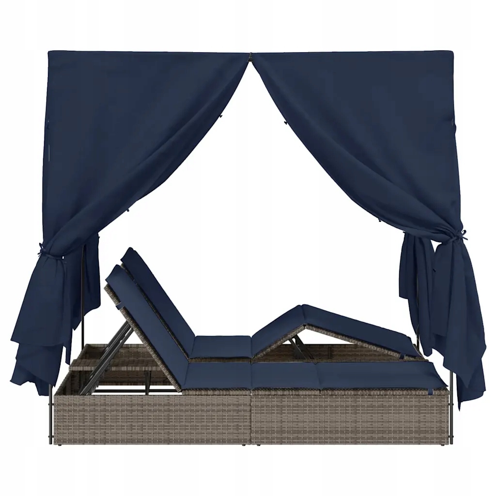 Уличный двухместный шезлонг с балдахином и шторами, 205x129x200 см, серый