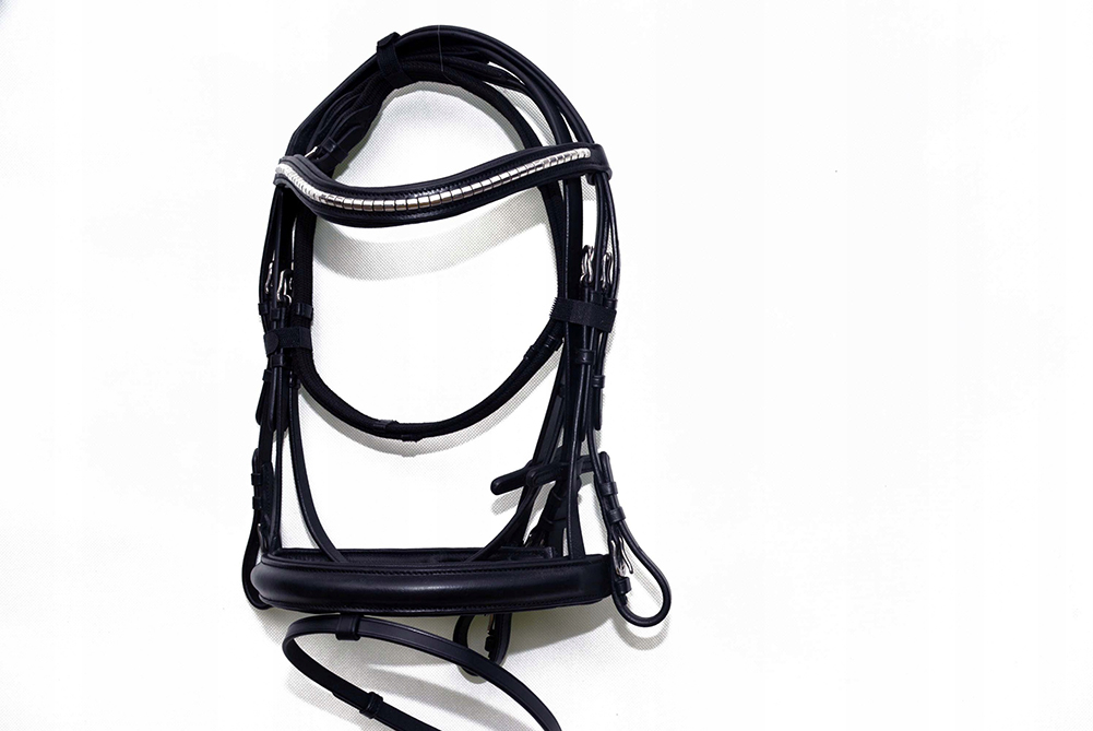 Поводья + поводья со стопорами Уздечка анатомического профиля, размер COB. Уздечка изготовлена на шорной фабрике во Франции. Изготовлена из воловьей кожи высочайшего качества, очень мягкая и приятная на ощупь, затылочная часть и надбровная часть обтянуты мягкой кожей. для предотвращения потертостей. Уздечка застегивается и регулируется с помощью прочных пряжек из очень хорошей нержавеющей стали. Смело покупайте.