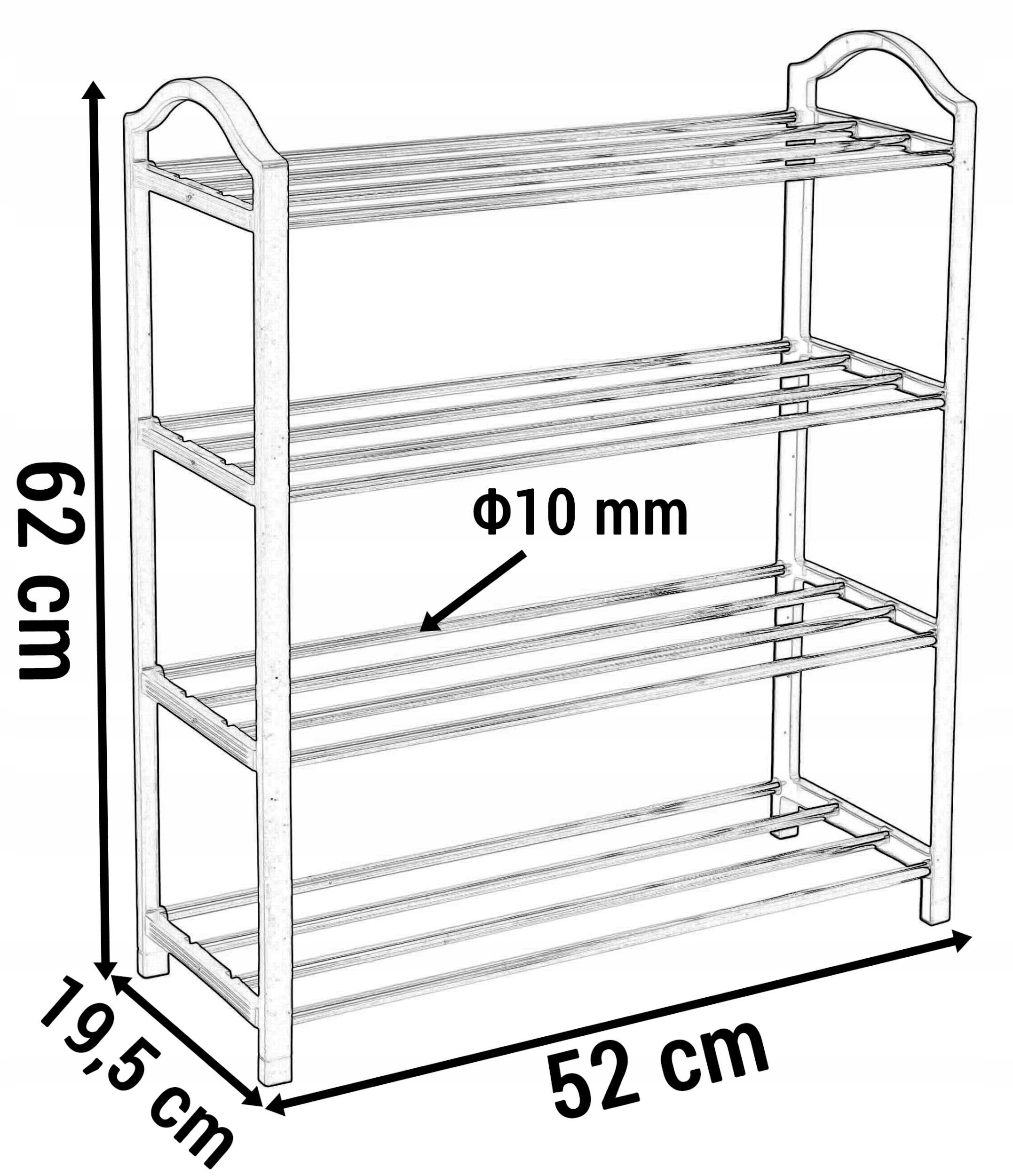 <р> ►Рост: 62 см <р> ►Ширина: 52 см <р> ►Глубина: 19,5 см <р> ►Расстояние между полками: 16 см <р> ►Диаметр трубки: 10 мм
