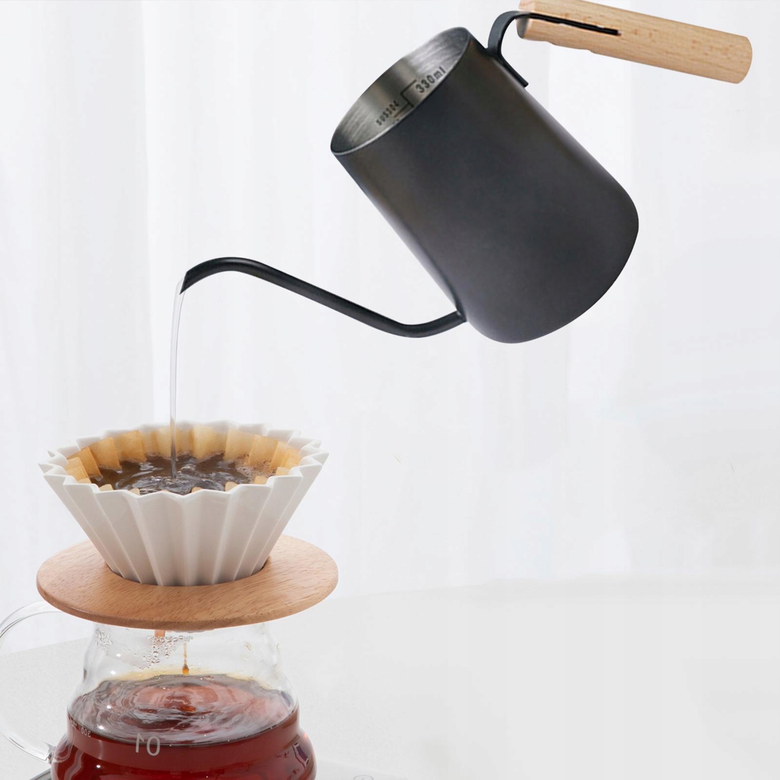 [Ручка] Кофеварка на гибкой шее с деревянной ручкой, нескользящая и не обжигающая, эргономичная и удобная в использовании.