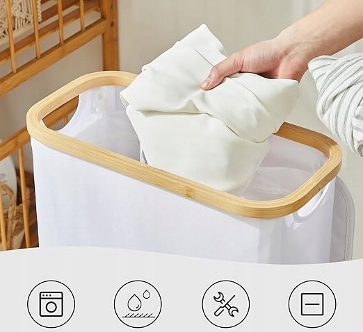 Сменный мешок облегчает перенос белья в стиральную машину, а также позволяет удерживать корзину на месте. чистота.