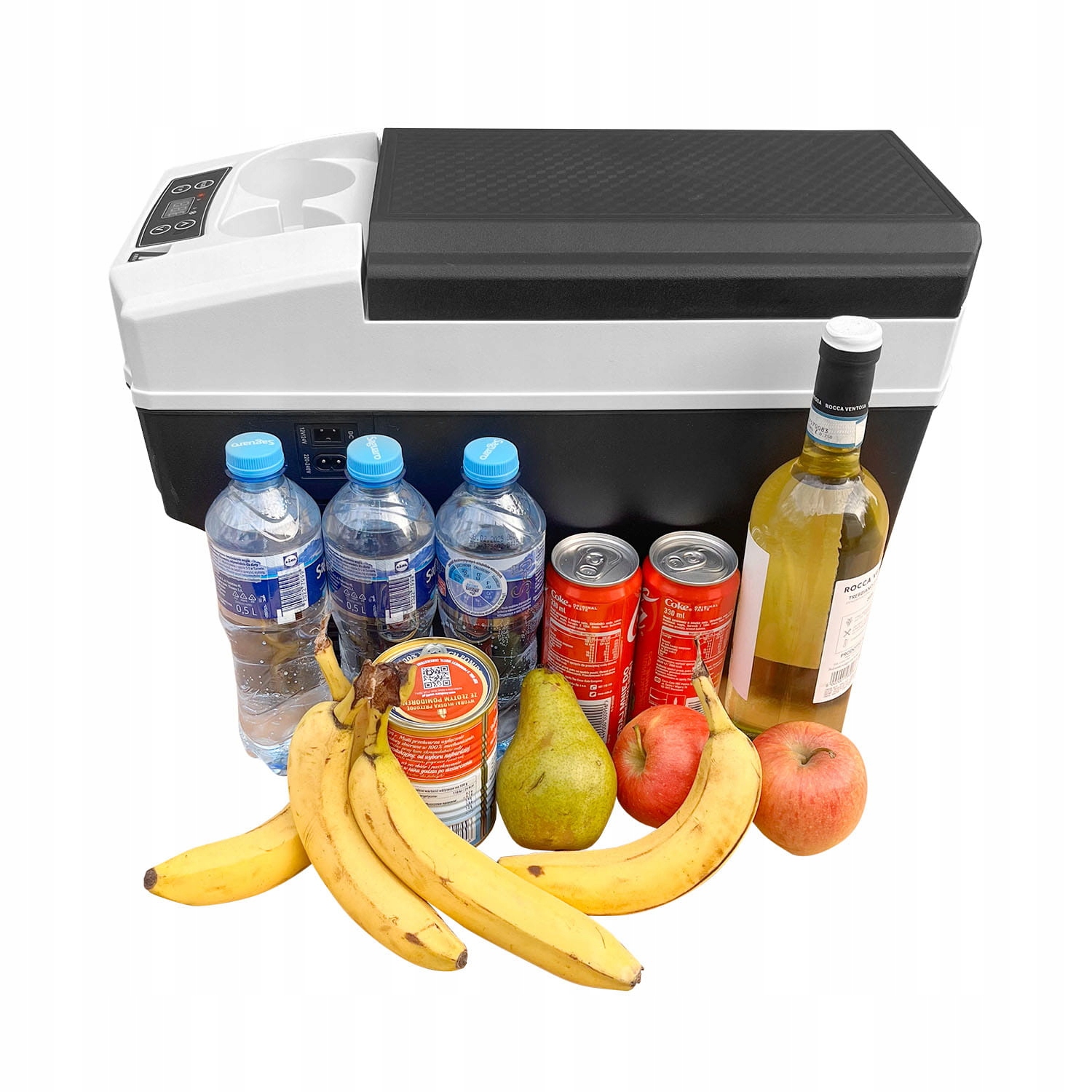 Несмотря на небольшой размер, наш холодильник имеет емкость 13 литров. Благодаря этому вы можете одновременно охлаждать различные продукты, например: 1 бутылку вина 750 мл, 3 бутылки воды, 2 банки газировки, 1 банку помидоров, 4 банана, 2 яблока, 1 грушу.