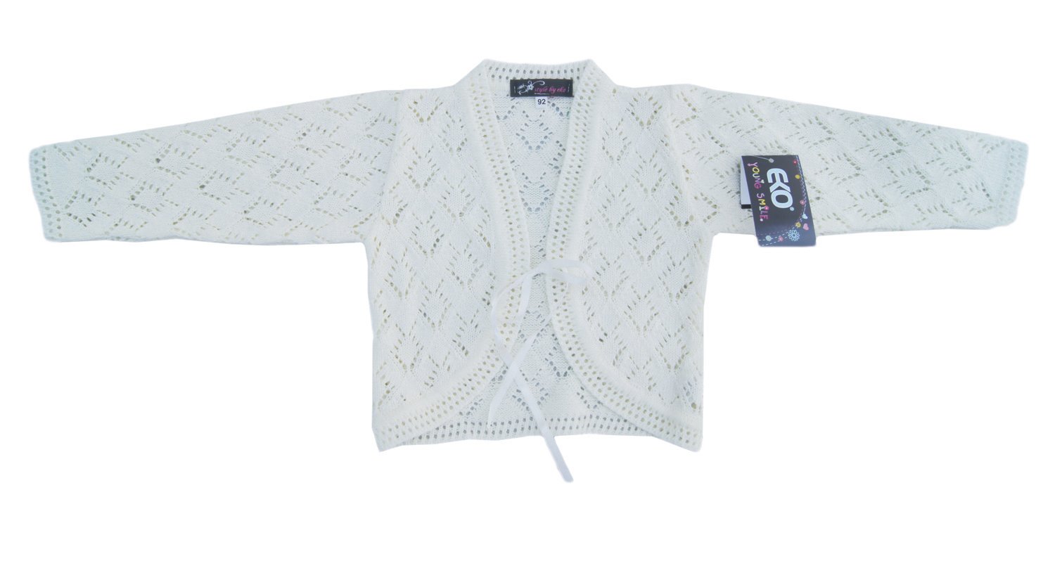 Представляем вам красивое болеро для девочки из 100% хлопка, перевязанное декоративной лентой.