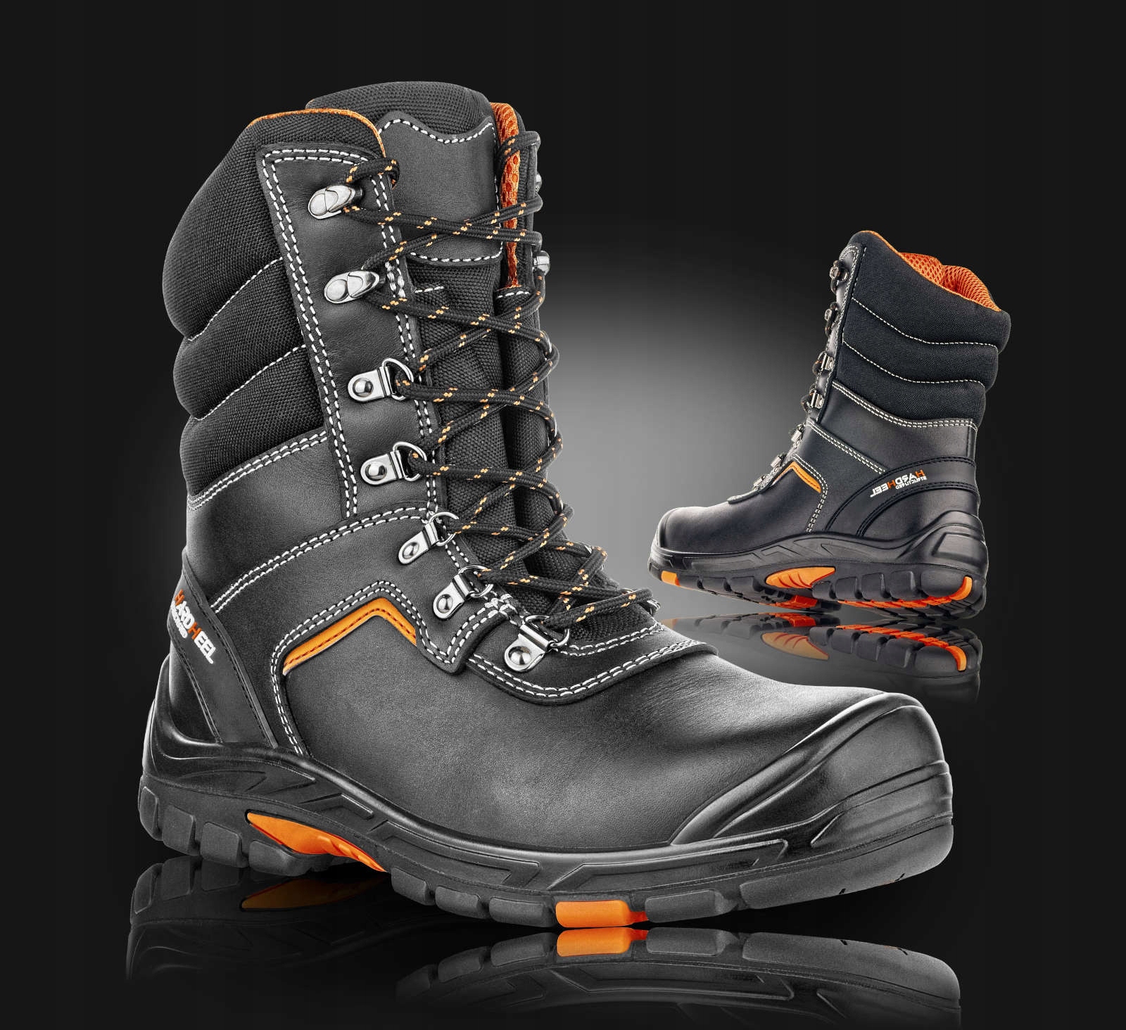 ТУФЛИ VM MARYLAND S3. Защитная обувь с защитой в виде композитного подноска, антиперфорационной кевларовой вставкой и противоскользящей ПУ/РЕЗИНОВОЙ подошвой. Высокие кожаные ботинки для тяжелых условий работы. Функциональная и безопасная обувь, удобная в ношении. Цвет: черный и оранжевый. Размер: 36 - 48.Верх: зернистая яловая кожа толщиной 2,0-2,2 мм. Подкладка: ламинированная дышащая ткань MESH. Внутренняя вставка: HI-POLY - легкий пенополиуретан анатомической формы, покрытый тканью MESH, антистатик. Конструкция: высокий кожаный верх, мягкая отделка воротника и язычка, регулировка с помощью шнурков, усиление задней части, укрепленный носок, подкладка MESH, внутренняя вставка HI-POLY, композитный защитный носок и кевларовая вставка против перфорации, устойчивый полиуретан. /РЕЗИНОВАЯ подошва -HRO. Подошва устойчива к контакту с горячей землей (300°С в течение 1 минуты), маслостойкая, противоскользящая, амортизирующая. Применение: в строительстве, машиностроении, автомобилестроении, на складе, на транспорте.