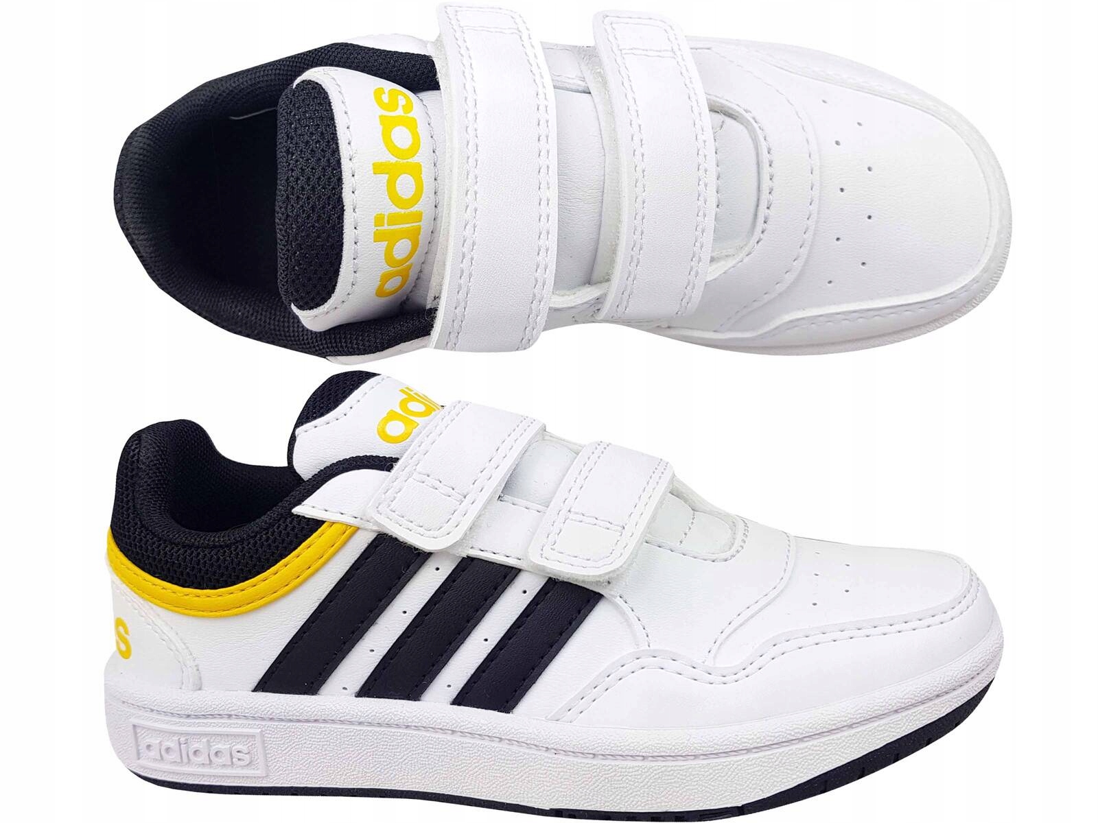 Классическая детская спортивная обувь из коллекции ADIDAS HOOPS. Застегивается на липучку для удобства надевания и снятия обуви.