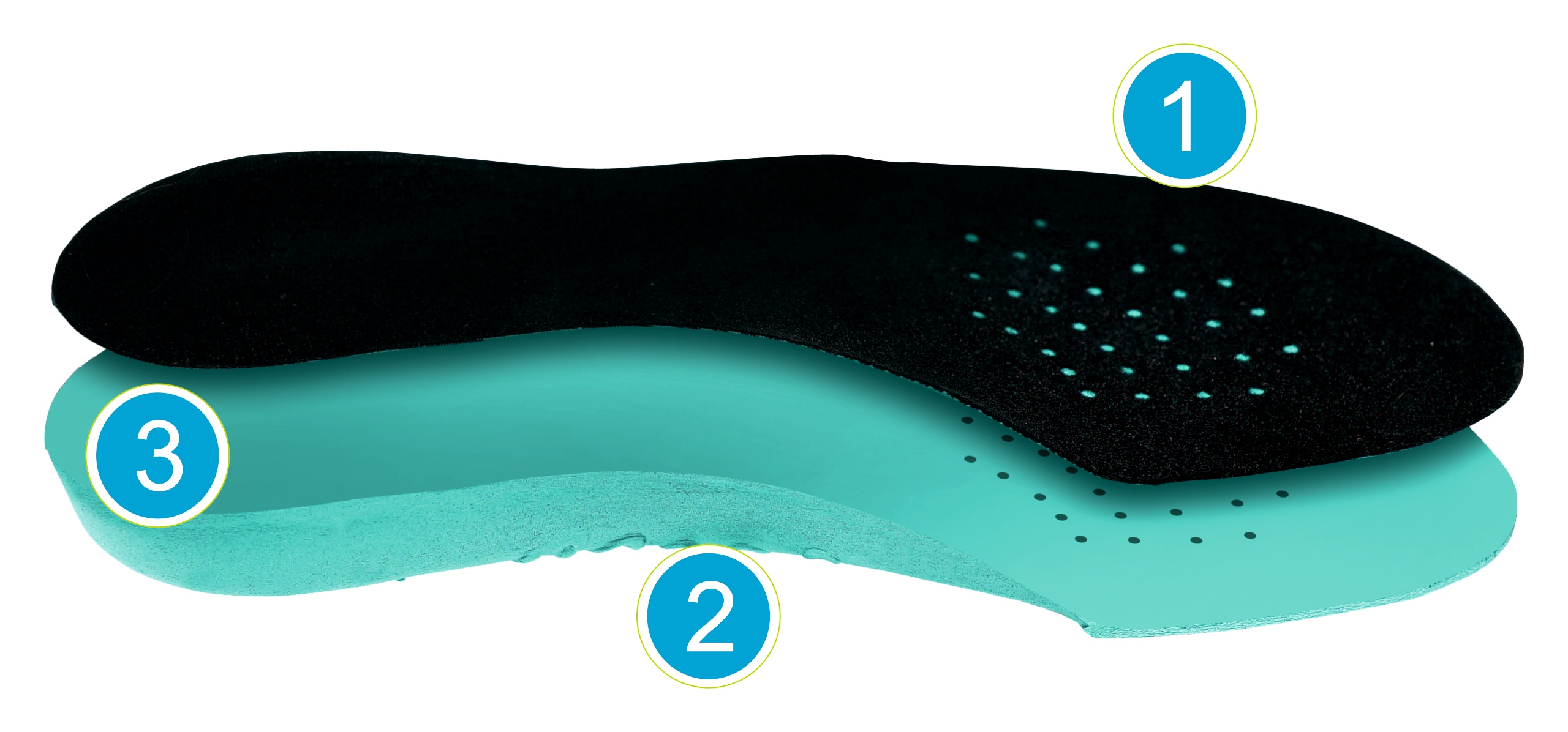 - 1️⃣ верхний слой покрыт велюровым материалом обеспечивает комфорт и удобство, а также улучшает циркуляцию воздуха в обуви;