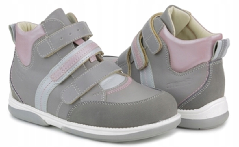 Ботинки на липучке из лицевой кожи, предназначенные для девочек школьного возраста, используемые в качестве обуви для активного отдыха, благодаря чему можно продолжать профилактическое и корректирующее действие системы. Они имеют жесткий задник и новую подошву MEMO. Адаптированы к ортопедическим стелькам. Имеет 3 ремня на липучке.