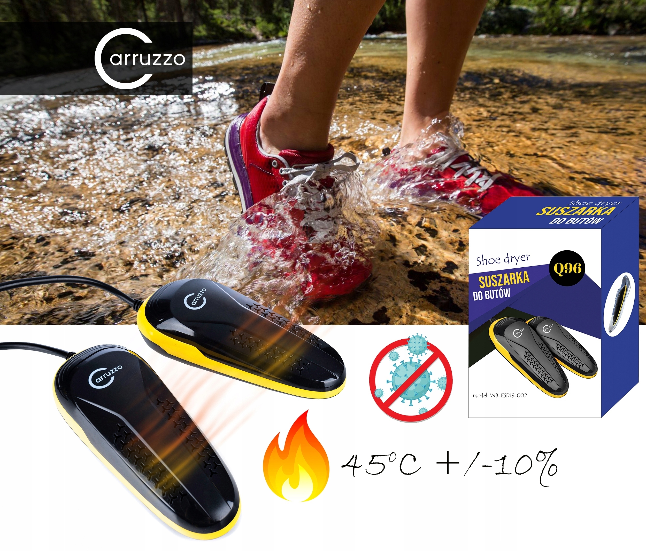 Сушилка также будет идеальной для повседневного для спортсменов . После завершения тренировок в тренажерном зале, шага или после бега, когда туфли влажная и потная, сушилка идеально поможет с сушкой, освежающей и дезинфекцией. заканчиваются вонючими и влажными тренировочными туфлями - с этого момента вы можете иметь свежую и дезинфицированную обувь на каждой тренировке!