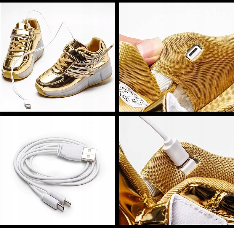 Светодиоды в кроссовках заряжаются с помощью USB-кабеля, входящего в комплект.