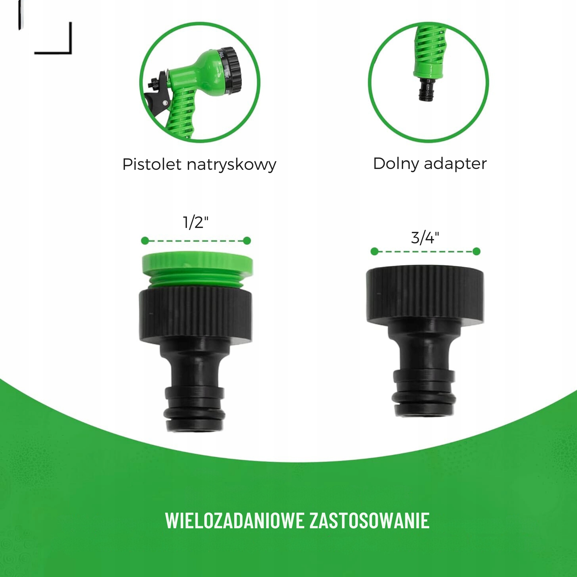ГИБКИЙ САДОВЫЙ ШЛАНГ 25-75М + СОЕДИНИТЕЛИ + ПИСТОЛЕТ 7 РЕЖИМОВ