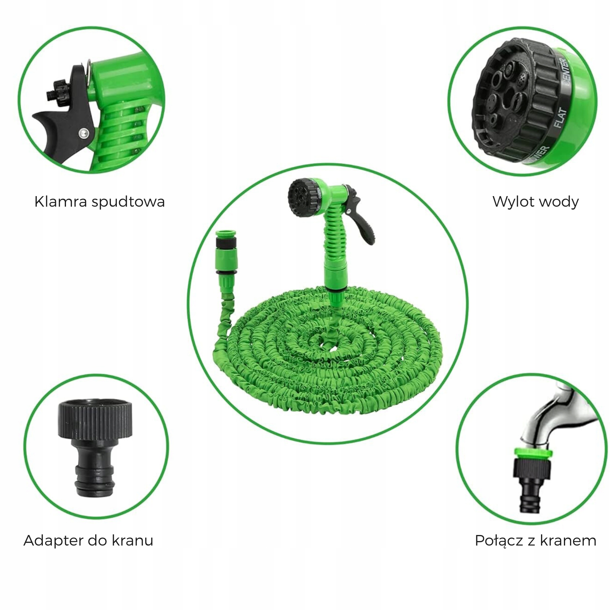 WĄŻ OGRODOWY ELASTYCZNY ROZCIĄGLIWY 25-75M + ZŁĄCZKI + PISTOLET 7 TRYBÓW