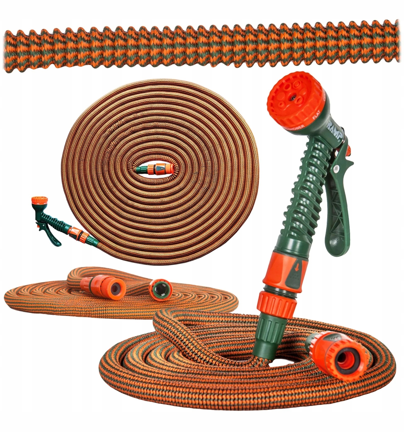 WĄŻ ROZCIĄGLIWY OGRODOWY 30 M SZYBKOZŁACZKA PISTOLET ZRASZAJĄCY RAMP