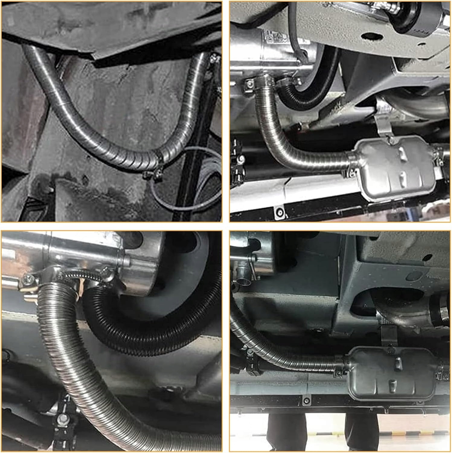 💎💎【Эффективное шумоподавление и герметичность】: Трубка стояночного обогревателя обладает отличным эффектом шумоподавления, что позволяет эффективно снижать шум. Имеются также два зажима из нержавеющей стали для лучшего соединения с выхлопной трубой стояночного отопителя и обеспечения отвода подогрева для идеальной герметичности.