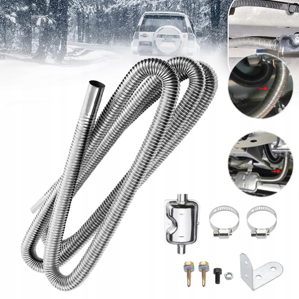 🚗🚗 Новейший комплект автозапчастей - вы получите выхлопной шланг длиной 300 см и улучшенный глушитель 24 мм. Также имеются два зажима и винты из нержавеющей стали, которые можно использовать для лучшей фиксации выхлопной трубы стояночного обогревателя и обеспечения идеальной герметизации.