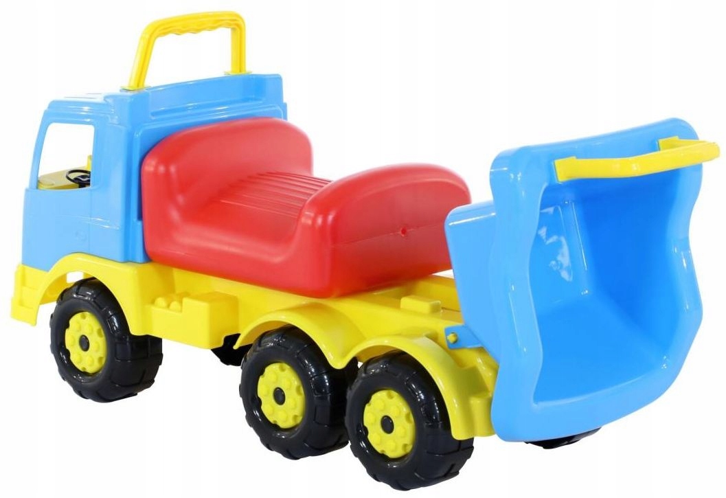 Многофункциональный грузовик идеально подходит для перевозки пассажиров: вы можете сидеть на большом удобном сиденье и управлять автомобилем, толкая его ногами. Машинку можно использовать и как толкач – малыш может держаться за одну из двух ручек и толкать транспортное средство вперед. Самосвал идеален в саду или на пляже.В теплые весенние и летние дни вы сможете перевозить любимые игрушки для песка и воды. А когда на улице холодно и серо, можно перенести веселье в детскую комнату и перевезти кубики, мягкие игрушки, куклы или другие мелкие предметы.