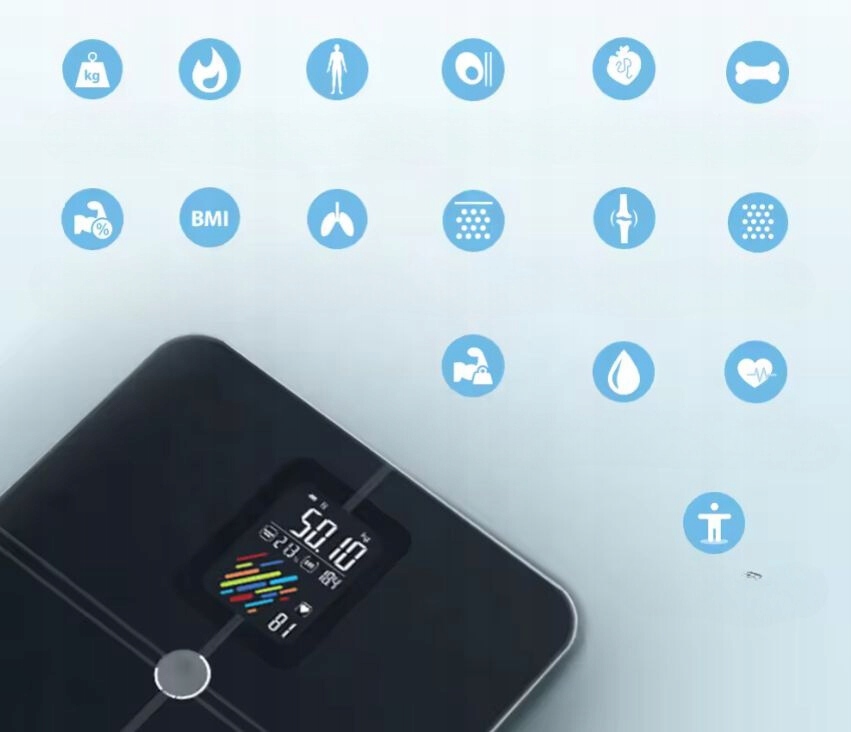 Waga SMART Łazienkowa Analityczna Sportowa 16 Parametrów LCD ANDROID iOS