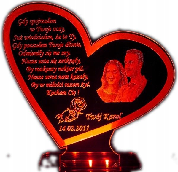 WALENTYNKI PODŚWIETLANA STATUETKA Z ZDJĘCIEM SERCE