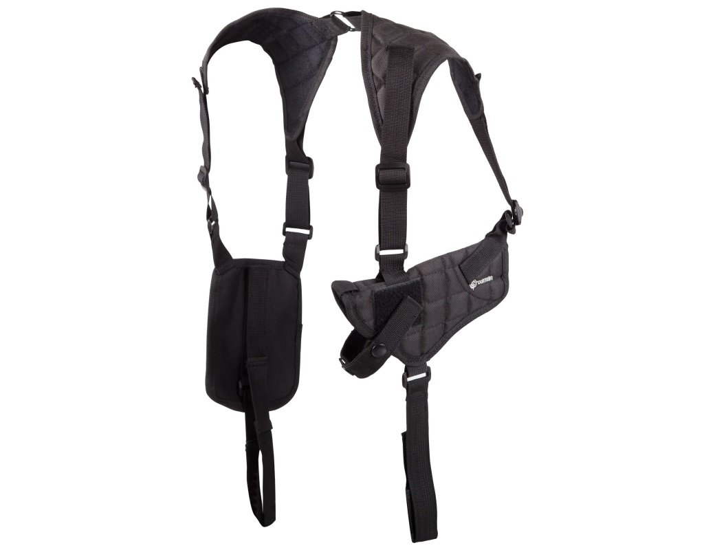 Модульный комплект из кобуры для пистолета и чехла на 2 магазина, подвешиваемых на подтяжки, из прочного полотна.