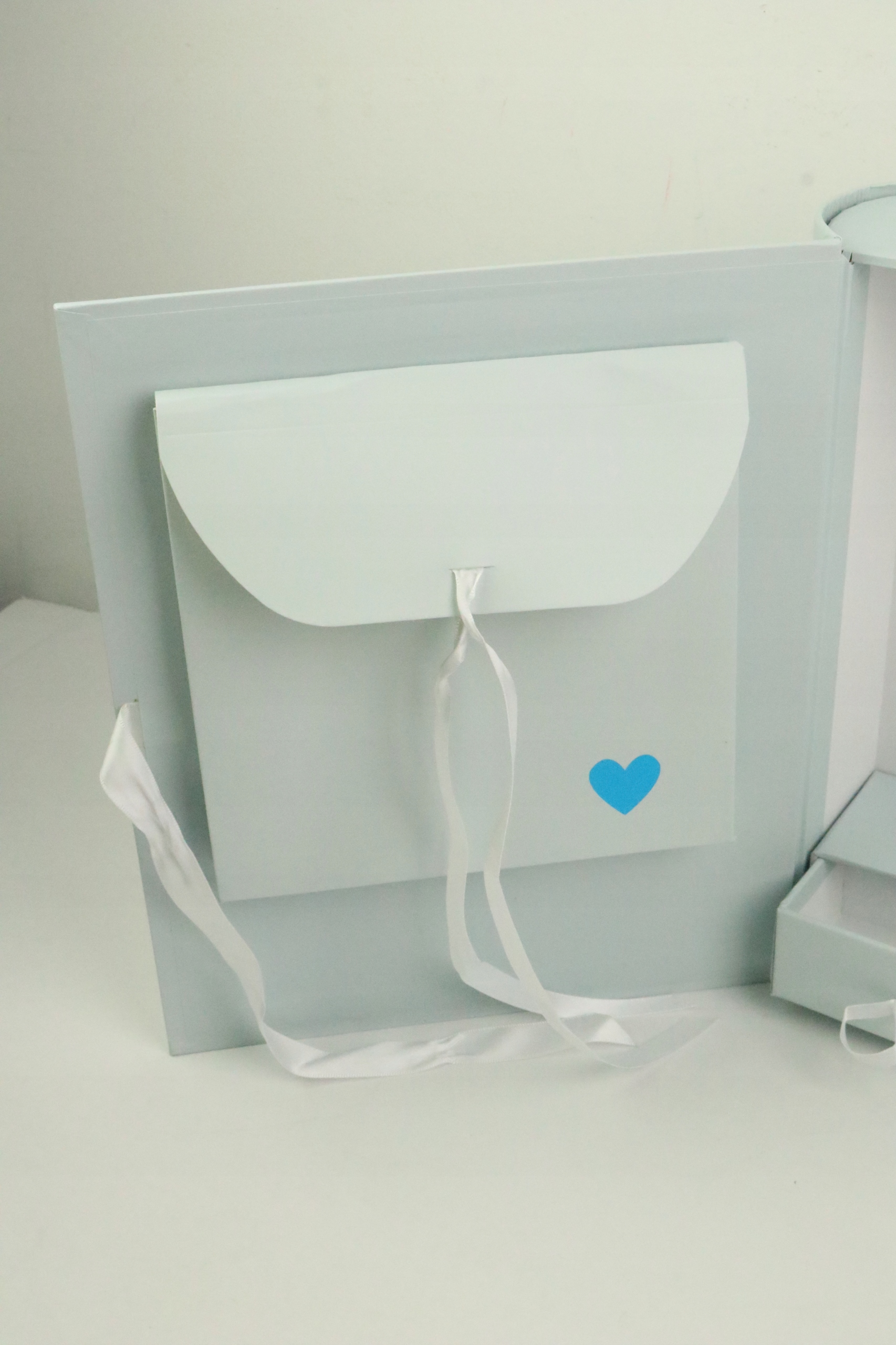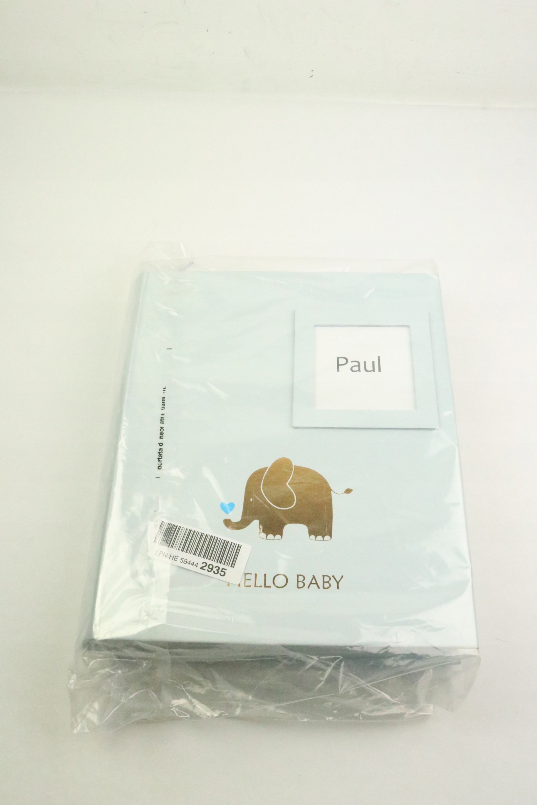 Представляем синюю сувенирную коробку для ребенка дизайна Walther. Имеет форму прямоугольника с размерами 27 см (длина) х 25 см (ширина) х 6,5 см (высота), а размеры именной рамки составляют 9,5 см (длина/общая внешняя ширина) х 7 см (длина). /ширина внутренняя). В коробке есть три небольших ящика для хранения первых детских товаров. На обложке изображен слоник с надписью «HELLO BABY». Все это украшено декоративным бантиком, закрывающим коробку. Идеальный сувенир на крещение или рождение.