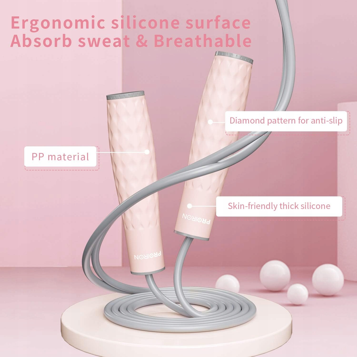 - ✅【Нескользящая и удобная ручка】Скакалка оснащен эргономичными ручками, покрытыми мягким пищевым силиконом, приятным для кожи и очень удобным в использовании. Противоскользящая текстура на поверхности скакалки обеспечивает надежный захват и эффективно предотвращает ее скольжение даже в потных руках. Скакалка PROIRON Упражнение проверено профессионалами, создано для вас