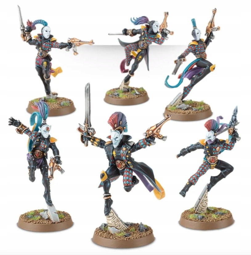 Эта коробка содержит все, что вам нужно, чтобы создать группу из 6 арлекинов, вооруженных мечом Шурикена и пистолетом, включая возможность присоединиться к мастеру трупа. Есть 6 наборов ног, все встроенные в раскалывающие обнажения, с которыми они создают основу для ваших миниатюр. У вас есть выбор из 7 различных передней части туловища и 5 туловища, а также 3 дополнительных опоры в куртках. Вы также получаете 6 мечей с двумя разными дизайнами, 6 пистолетами Shuriken, 6 тканевыми ткани, 2 объятиями арлекина, 2 вспышках арлекина, 2 нейрона и 2 пистолета слияния. Существует также меч власти, если вы хотите улучшить свой мастер.