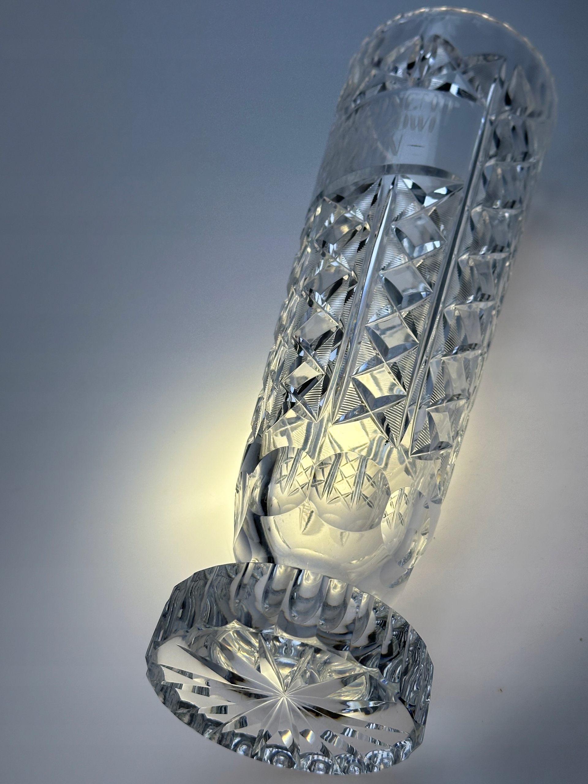 Wazon pamiątkowy kryształ szlify Zasłużonym działaczom DOZPN wys 30.5 cm