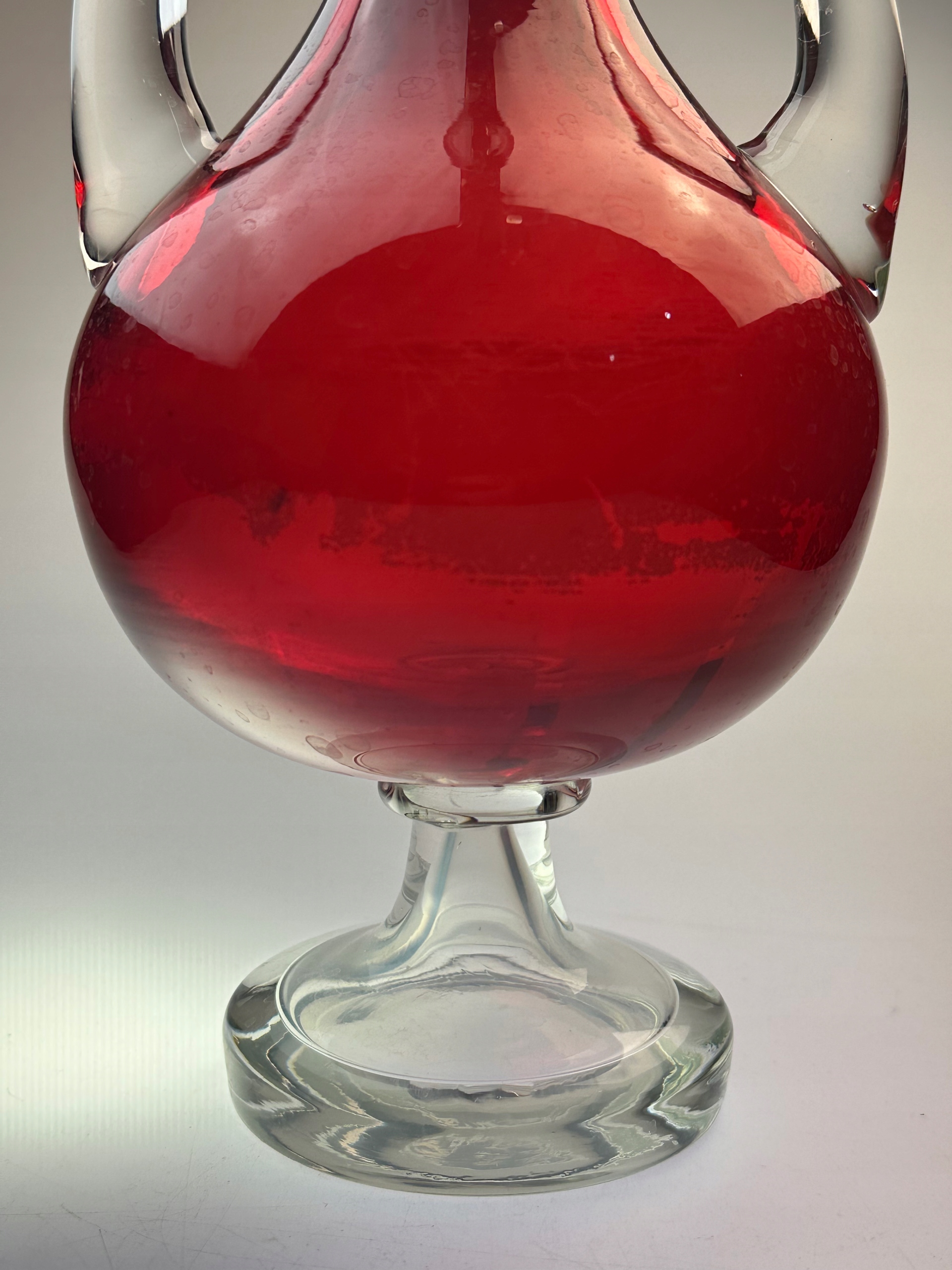 Wazon rubinowy Tarnowiec amfora na stopie z uszami PRL wys 37.5 cm
