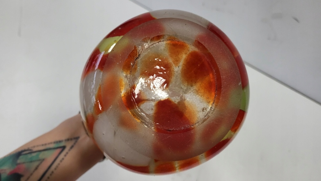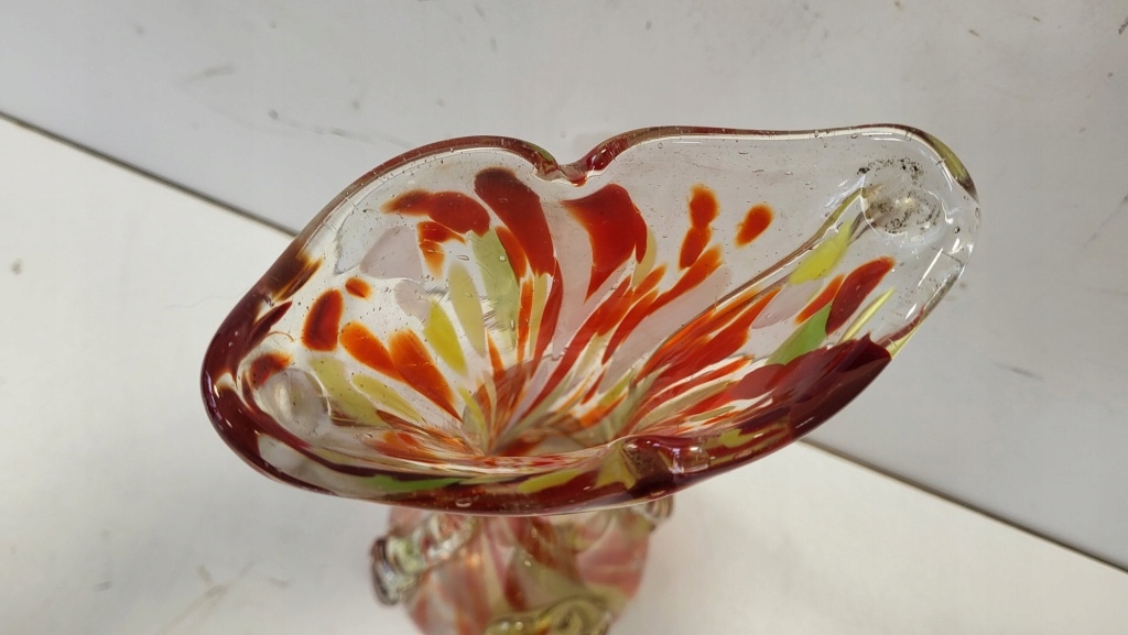 WAZON SZKLANY OZDOBNY KOLOROWE SZKŁO PRL WYSOKI 36cm STAN DOBRY KROSNO