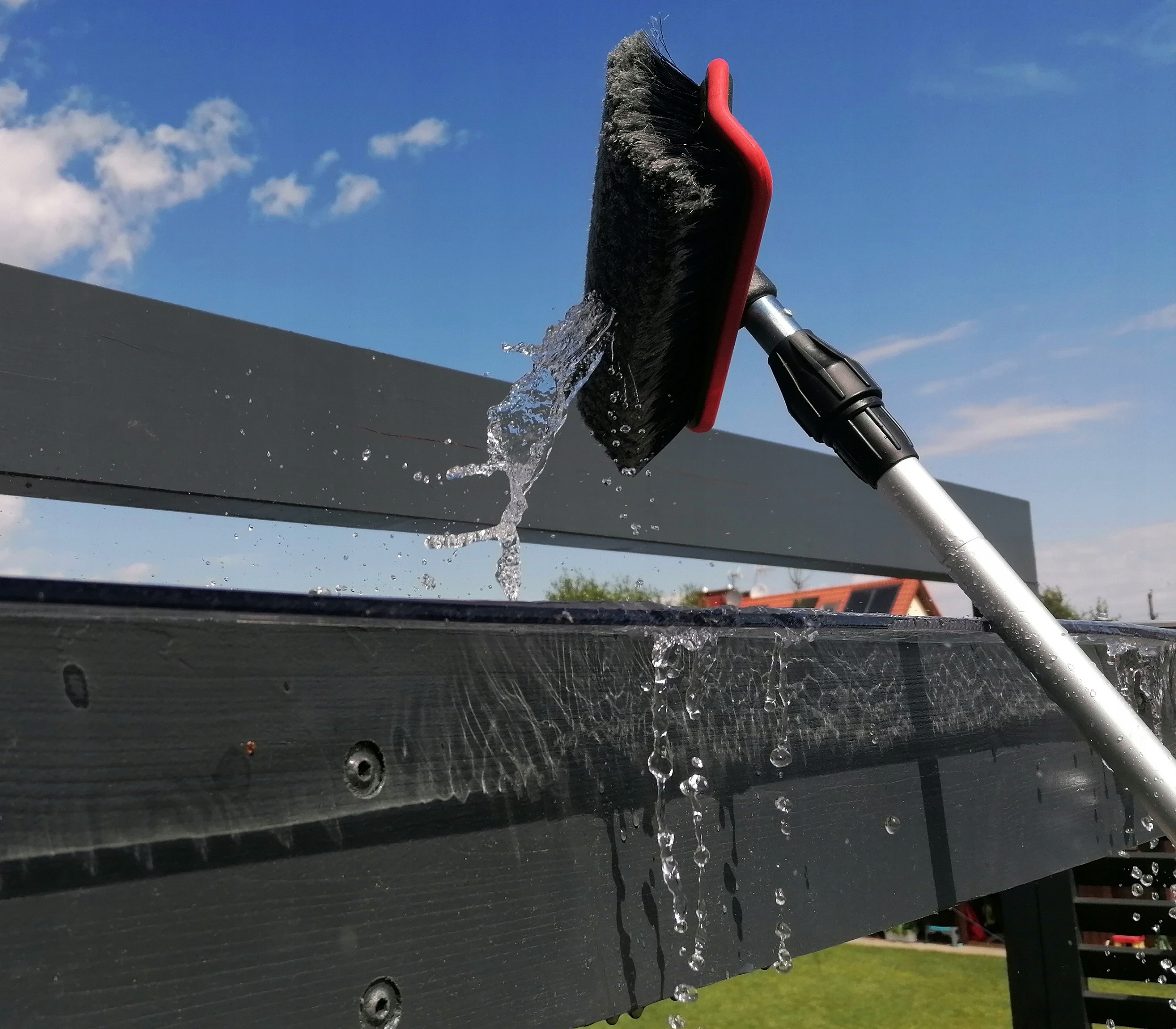 • Сплошная телескопическая щетка с алюминиевой насадкой ручка, регулируемая по длине до 400 см.