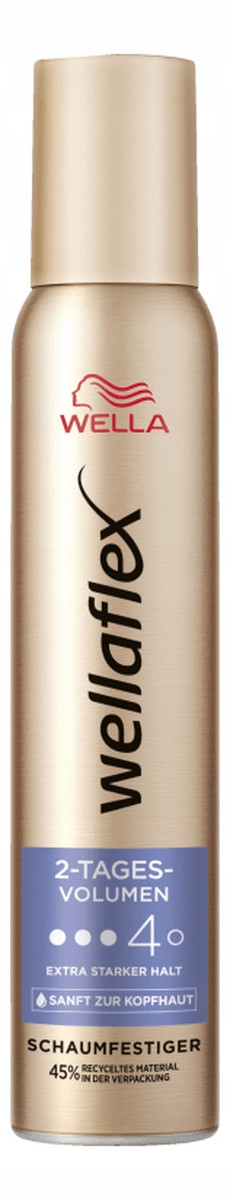 был создан мусс для стиля Wellaflex в течение 2 дней, чтобы расширить вашу долговечность прически. Он мягко работает на коже головы, проходил дерматологические тесты и дает волосы гораздо больший объем, даже на следующий день. Это позволяет легко моделировать и расчесывать волосы, обеспечивая сильную консолидацию, не теряя эластичности и естественной эластичности волос. Эта пена стиля не содержит силиконов, обеспечивает защиту от ультрафиолетового излучения и солнца, а упаковка составляет 45% переработанных материалов.