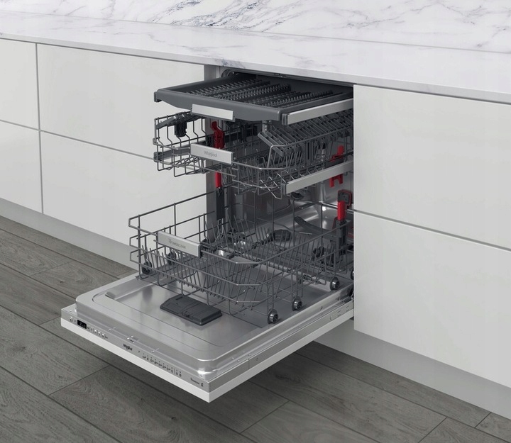 Посудомоечная машина Whirlpool оснащена складными элементами, что увеличивает удобство использования