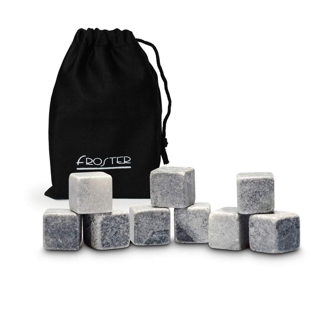 - в комплект входит элегантный черный футляр, два стакана для виски и 9 каменных кубиков для напитков в мешочке