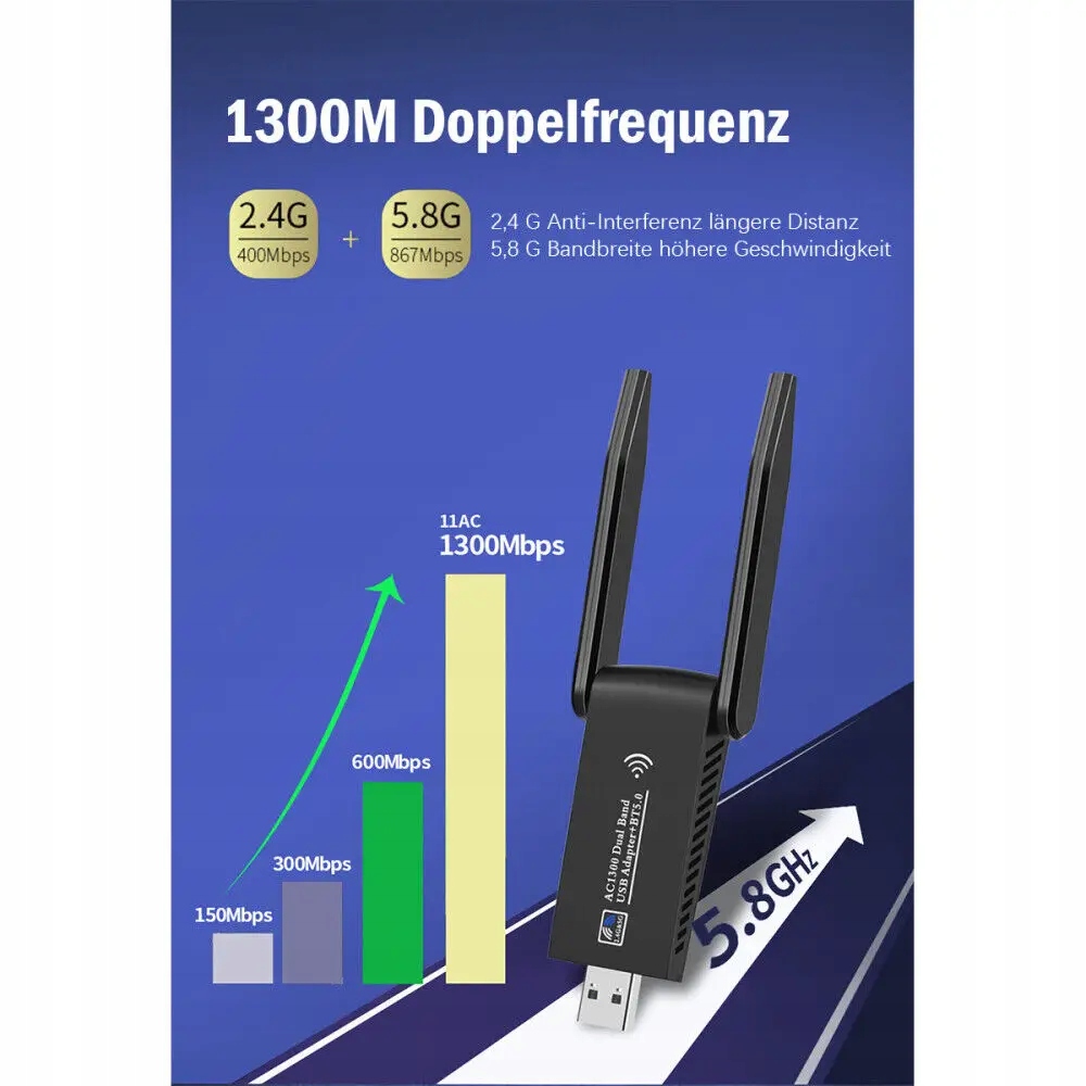 1* WLAN Bluetooth 5.0 Адаптер -адаптер USB3.0 Stick 1300MBPS WiFi Dual -полоса 5 ГГц антенны ПК