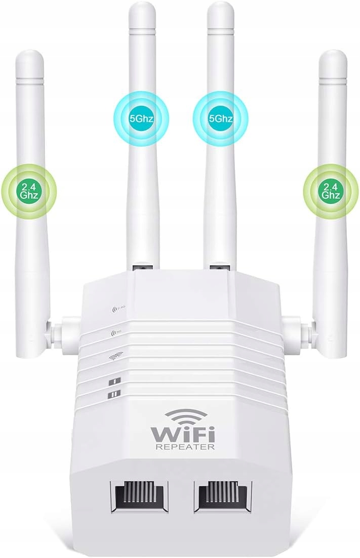 <р> Двухдиапазонный повторитель WLAN 5 ГГц и 2,4 ГГц <р> Он поддерживает два диапазона 2,4 ГГц и 5 ГГц и даже достаточно умен, чтобы автоматически выбирать лучший и самый быстрый диапазон частот для ваших устройств. <р> Расширение радиуса действия вашей сети WLAN <р> Этот удлинитель Wi-Fi распространяет сигнал вашего маршрутизатора в труднодоступные углы и уменьшает мертвые зоны. <р> Оставайтесь на связи благодаря быстрой сети. <р> С этим усилителем Wi-Fi со скоростью 1200 Мбит/с вы всегда будете подключены к быстрой и стабильной сети Wi-Fi. <р> Вопросы и ответы: <р> F: Может ли репитер Wi-Fi повысить скорость вашей сети Wi-Fi? <р> О: Мне достаточно сказать вам, что функция усилителя Wi-Fi заключается в увеличении радиуса действия вашей сети Wi-Fi в мертвых зонах. Репитер Wi-Fi может только расширить существующий диапазон Wi-Fi, но не увеличивает скорость Wi-Fi. Как правило, частота ретранслятора снижается и не может достичь исходного значения. <р> F: Где мне разместить удлинитель Wi-Fi? <р> О: Мы рекомендуем после успешной настройки повторителя Wi-Fi переместиться на полпути между роутером и диапазоном слабого сигнала. Выбранное местоположение должно находиться в пределах зоны действия существующей сети маршрутизатора WLAN. <р> Характеристики продукта: <р> - Скорость передачи данных: 1200 Мбит/с <р> -Антенна: 2 * Внешняя антенна с высоким коэффициентом усиления <р> -Режим работы: Репитер/AP <р> -Полоса частот: 2,4 ГГц 5 ГГц <р> -Стандарты: IEEE 802.11b/g/n <р> Комплект поставки: <р> 1 репитер Wi-Fi. <р> 1 руководство пользователя✅Параметры продукта