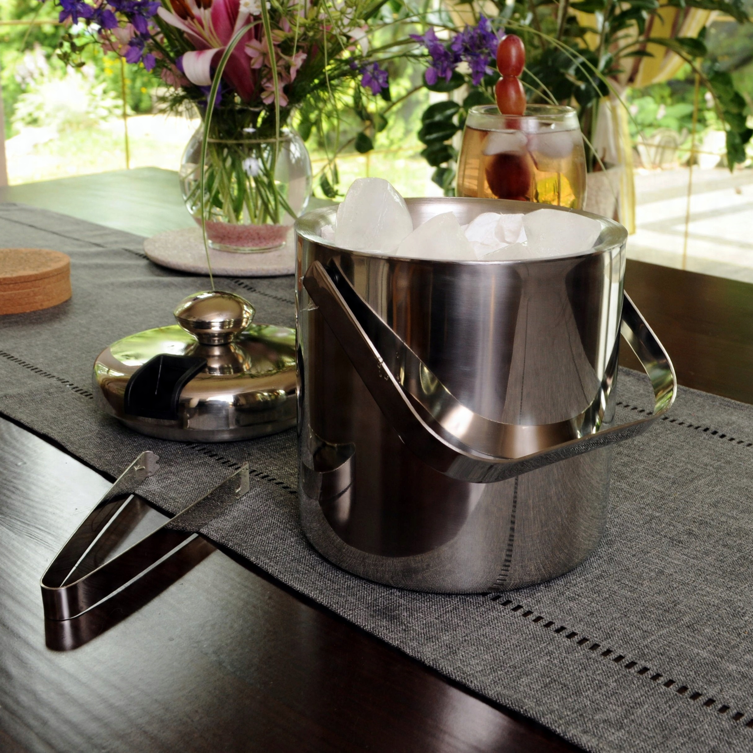 Набор оснащен < b >стальная крышка, сито и металлические щипцы для льда, благодаря которым можно элегантно подавать кубики льда к напиткам. Ведро хорошо термоизолировано, что позволяет кубикам льда дольше сохранять форму.